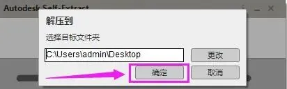 3、默认解压位置c盘,点击【确定】。等待 AutoCAD 2016 解压完成