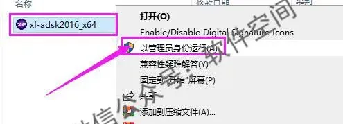 16、鼠标右击【XF-adesk2016.exe】,选择【以管理员身份运行】。