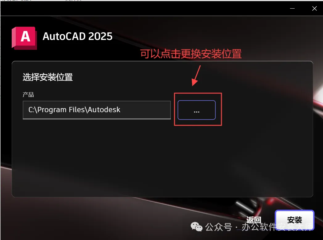 ②如果不想安装在C盘点击【…】更换安装位置,可以在D盘新建一个【CAD2025】文件夹