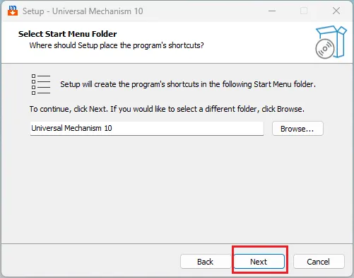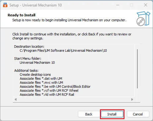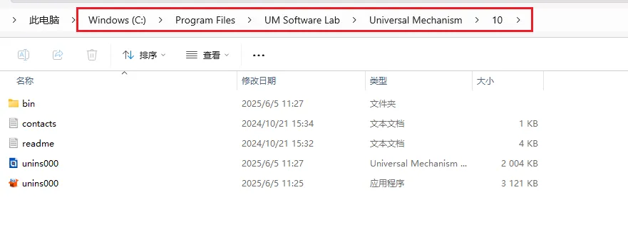 UM软件主程序缺省安装路径位于:C:\Program Files\UM Software Lab\Universal Mechanism\10,如下图。