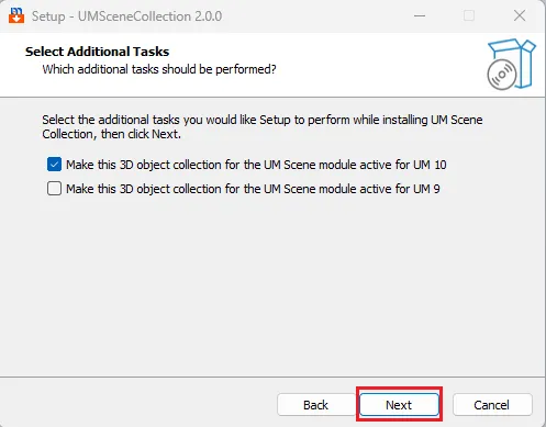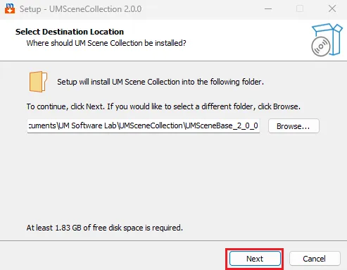 2、点击Next,缺省安装路径位于“C:\Users\Public\Documents\UM Software Lab\UMSceneCollection\UMSceneBase_2_0_0”。