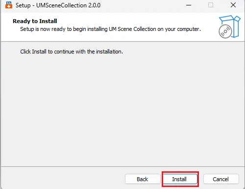 1、以管理员身份运行独立的UM Scene场景模块的素材库安装包umscenecollection.exe。