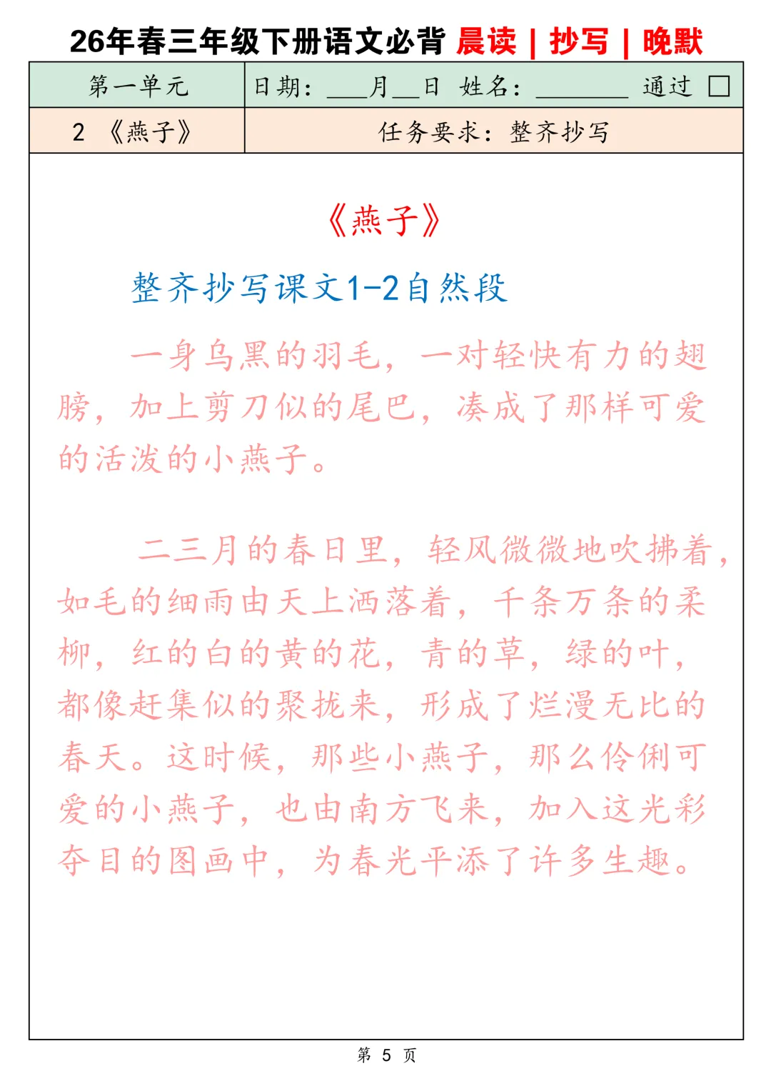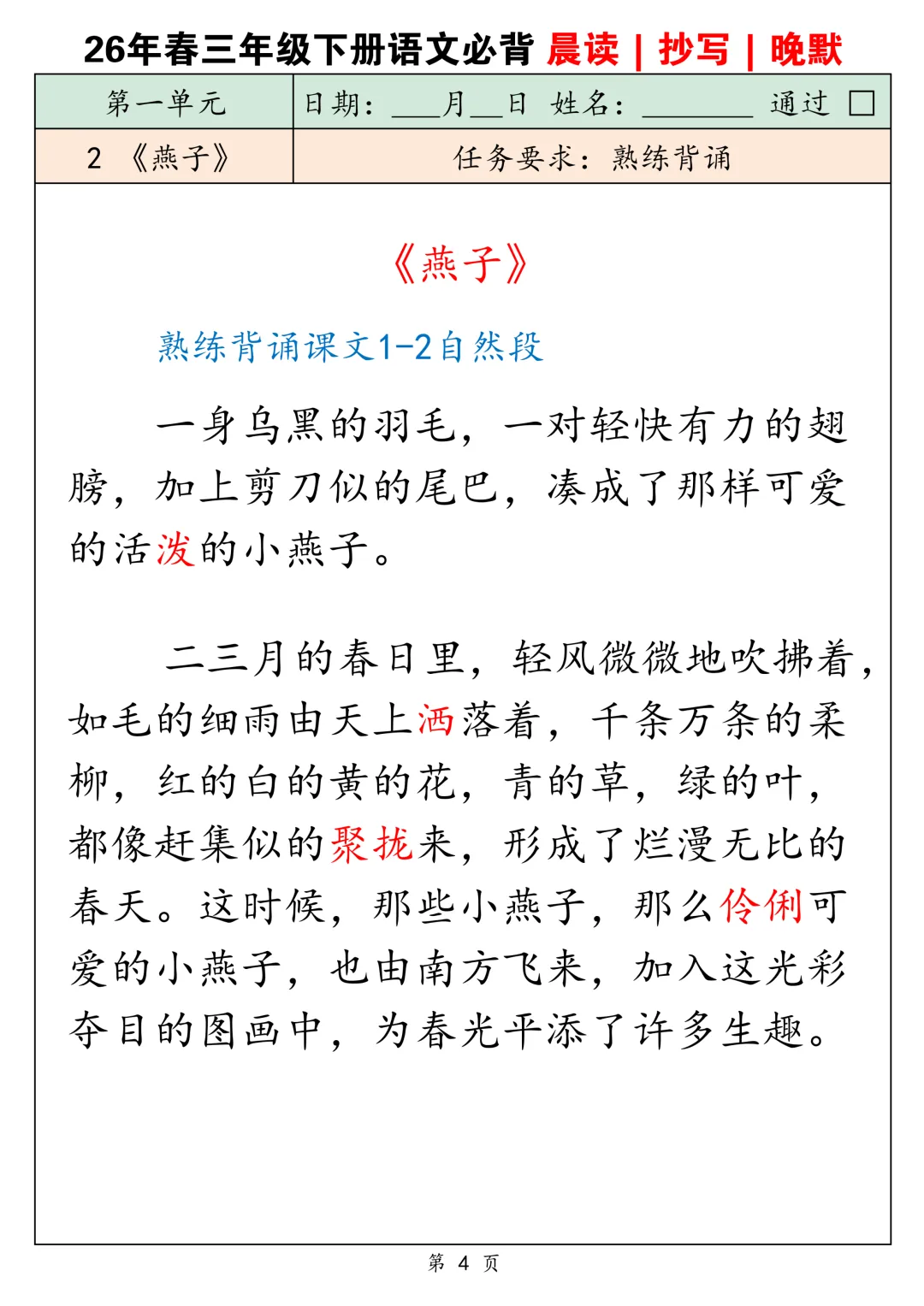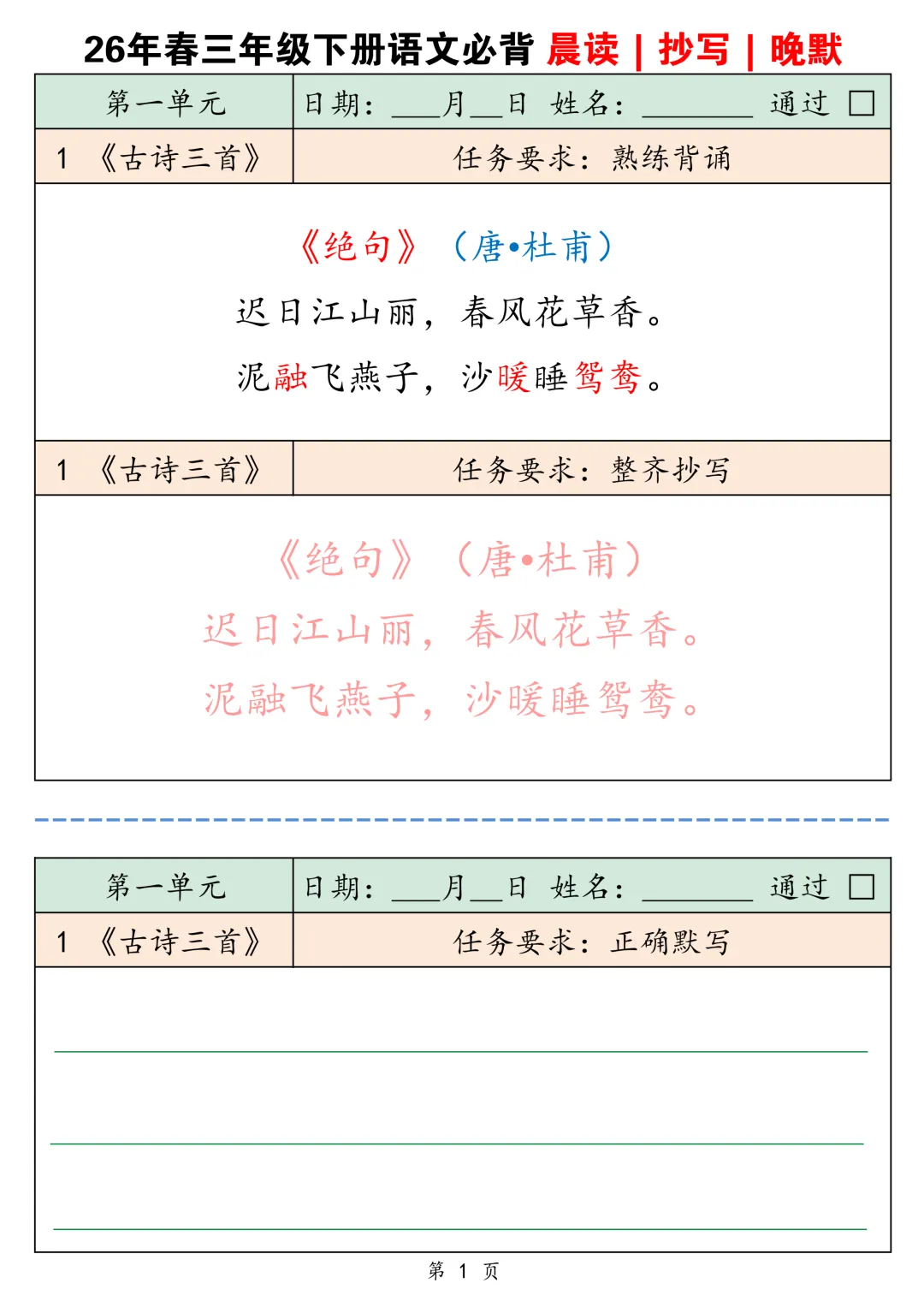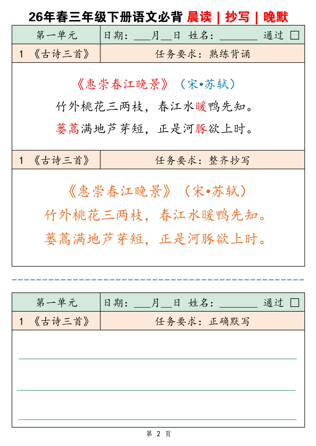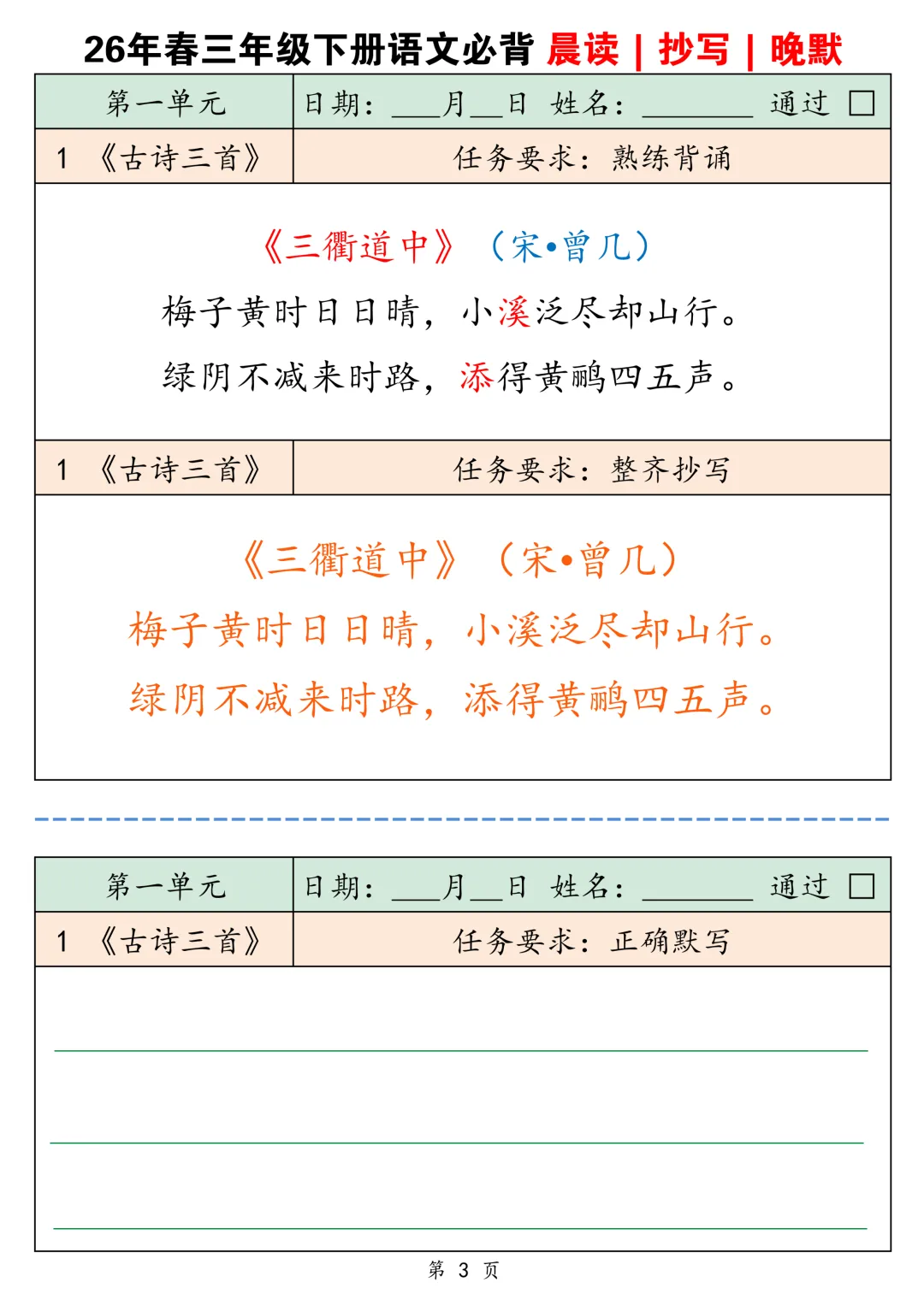 2026春三下语文背诵默写卡片共25页-电子版可下载打印