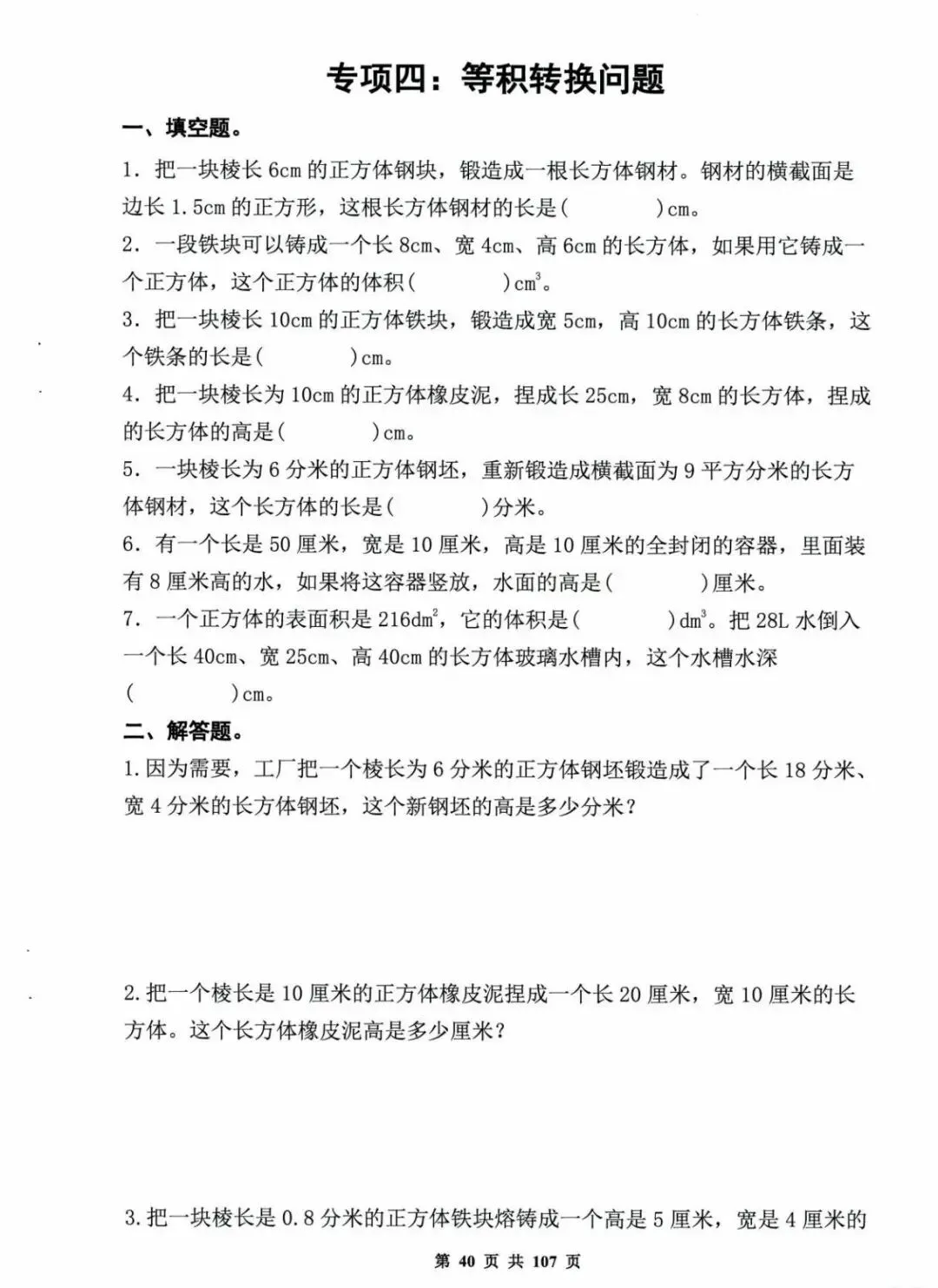 五年级下册数学《八大专项重点专项合集》,电子版可打印