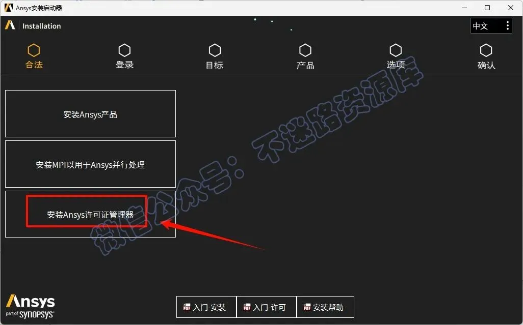 4.点击“安装ANSYS许可证管理器“