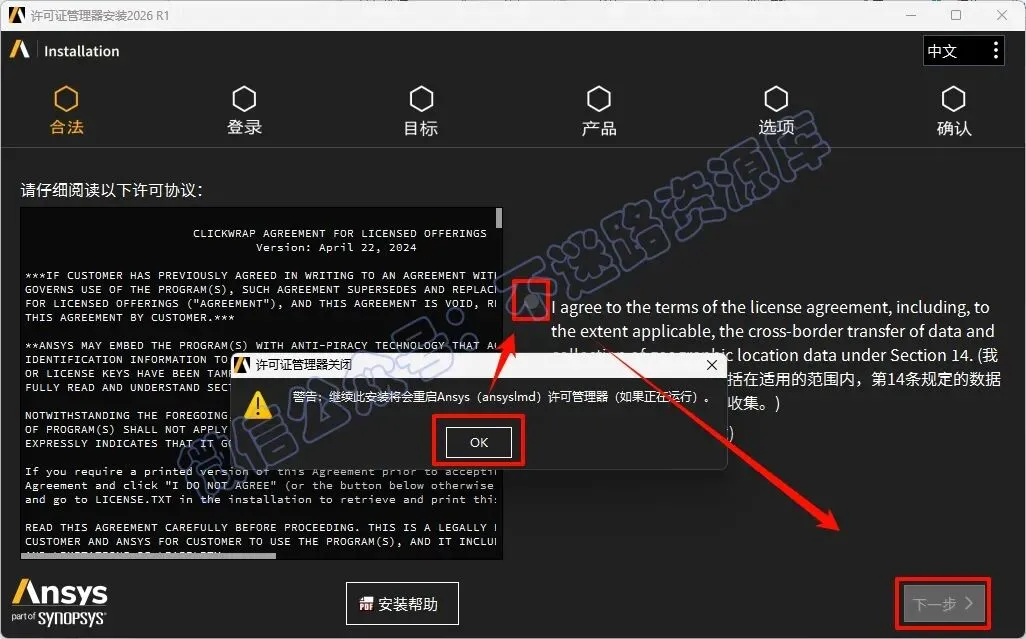 温馨提示:本教程包含许可证管理器安装、ANSYS及Electronics、Lumerical、Zemax软件安装。如果已安装ANSYS License Manager 2025许可证管理器的用户请直接从第23步开始进行安装