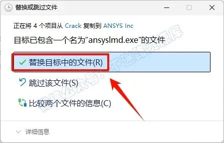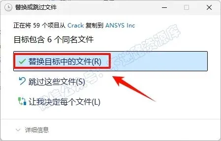 14.点击“替换目标中的文件“(若提示需要权限,勾选”为所有…”,点击“继续”