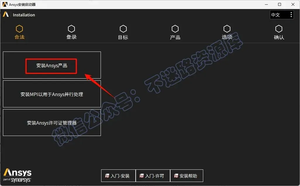 25.点击“安装ANSYS产品”