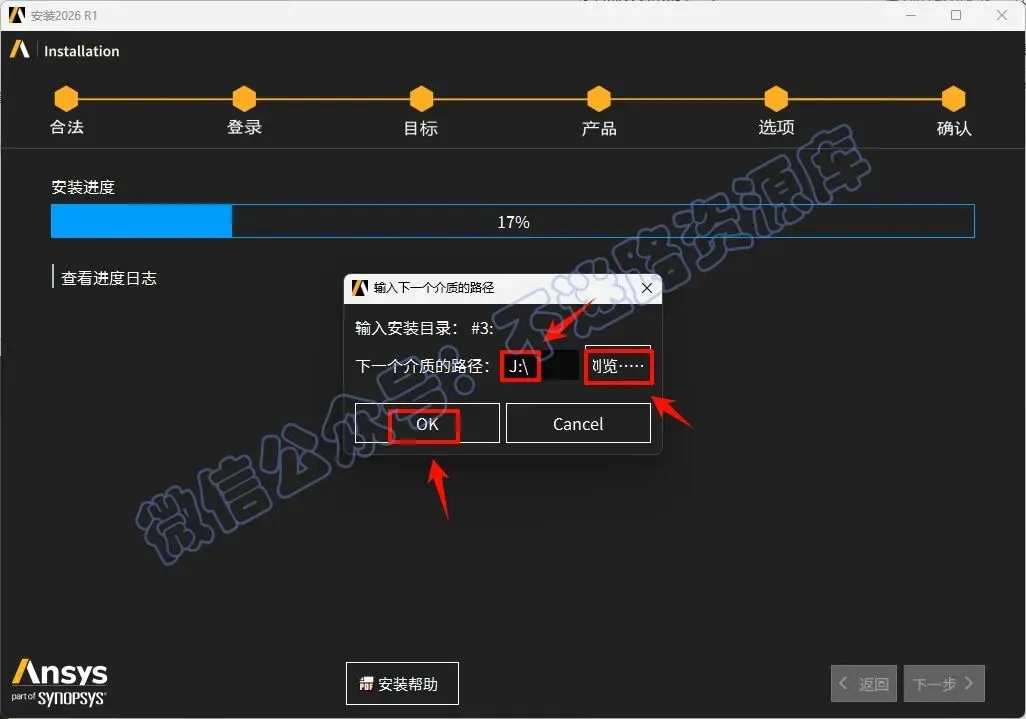 41.中途安装进度达到17%的时候会提示选择下一个介质的路径,返回之前解压的“Ansys.2026.R1.Products”文件夹,选中“ANSYS2026R1_WINX64_DISK3”iso文件,鼠标右键选择“装载”