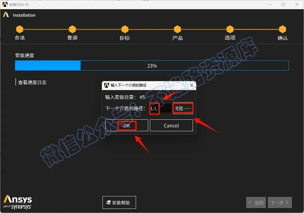 47.中途安装进度达到23%的时候会提示选择下一个介质的路径,返回之前解压的“Ansys.2026.R1.Products”文件夹,选中“ANSYS2026R1_WINX64_DISK5”iso文件,鼠标右键选择“装载”
