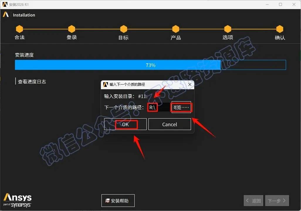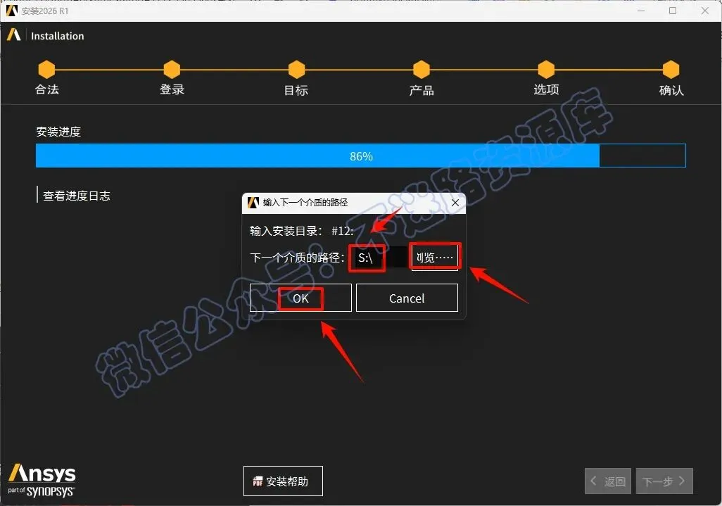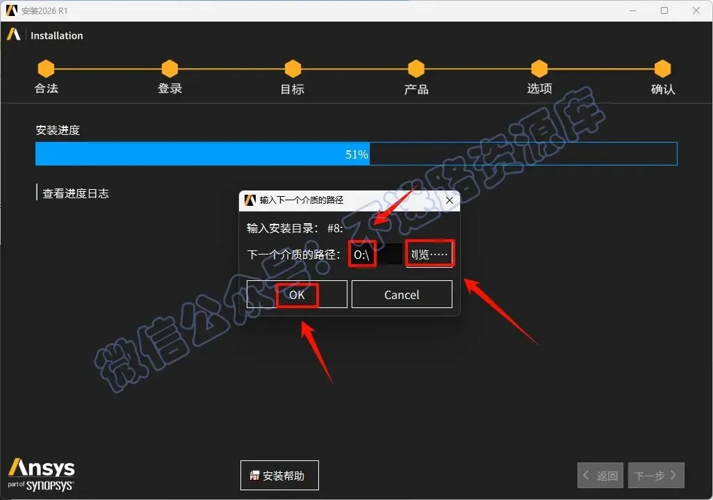 50.中途安装进度达到40%的时候会提示选择下一个介质的路径,返回之前解压的“Ansys.2026.R1.Products”文件夹,选中“ANSYS2026R1_WINX64_DISK6”iso文件,鼠标右键选择“装载”
