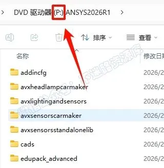 38.返回之前解压的“Ansys.2026.R1.Products”文件夹,选中“ANSYS2026R1_WINX64_DISK2”iso文件,鼠标右键选择“装载”