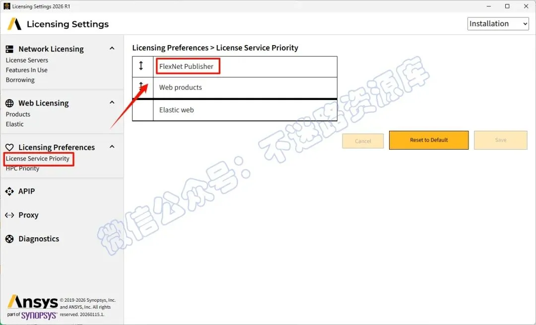 80.打开“License service priority”,确保“FlexNet Publisher”在最上边第一个(若没有请用鼠标左键拖动项目到第一位,然后点击”Save“保存)