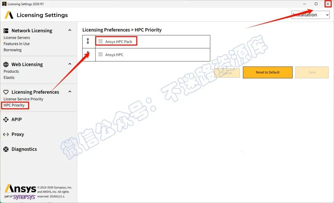 81.打开“HPC priority”,确保“ANSYS HPC Pack”在最上边第一个(若没有请用鼠标左键拖动项目到第一位,然后点击”Save“保存),关闭界面