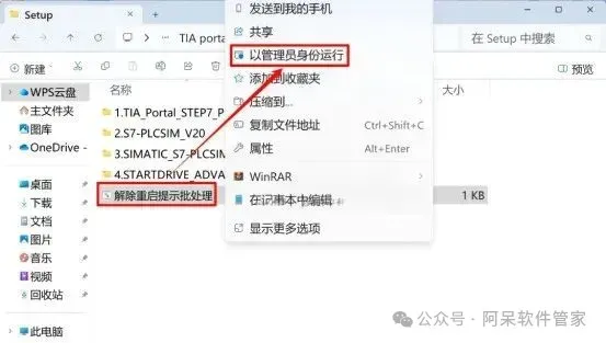 28.选中【解除重启提示批处理】右键【以管理员身份运行】