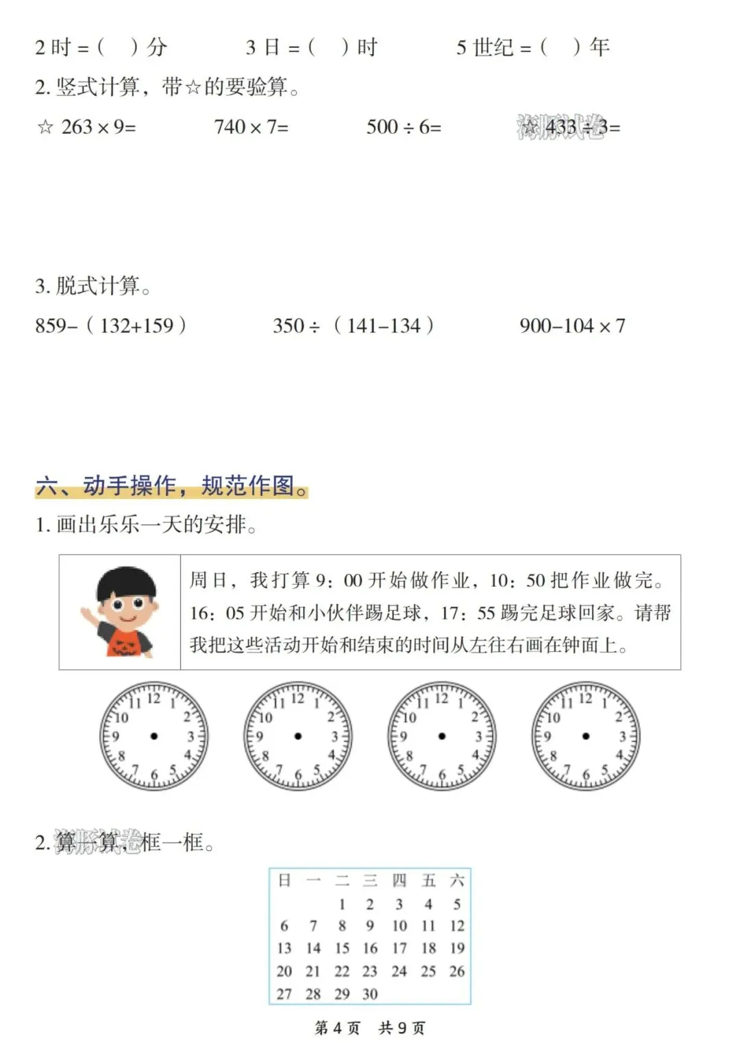 26年春三年级下册数学《年月日专项训练》电子版可打印