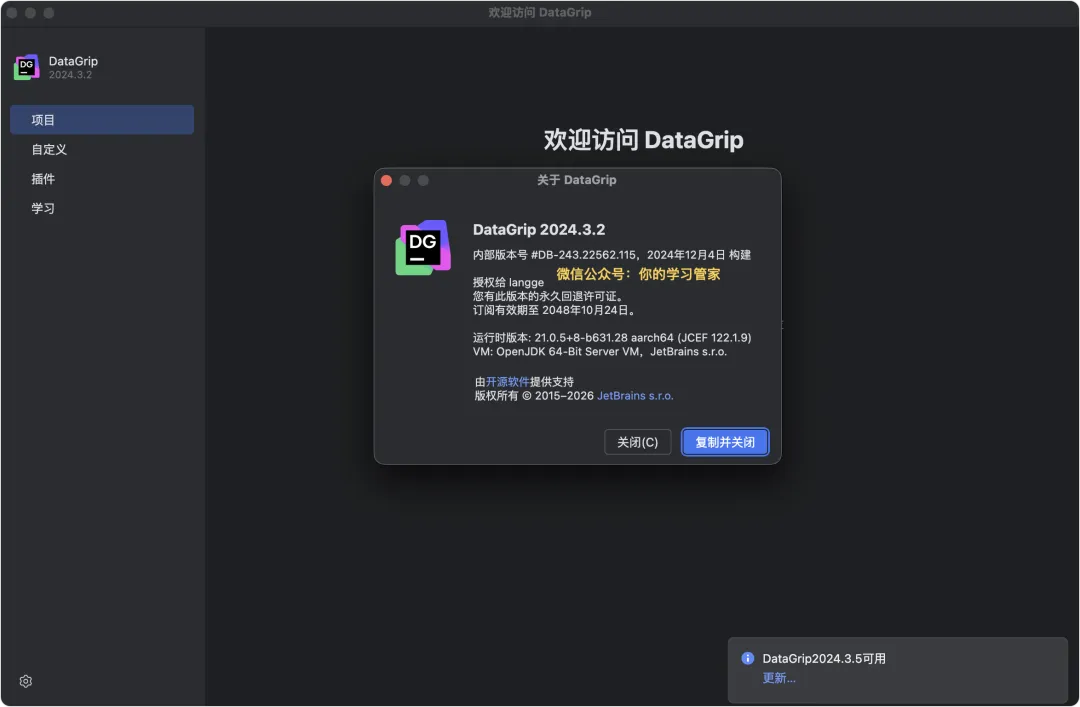 1、请在公众号「你的学习管家」后台回复:DataGrip 获取下载链接!