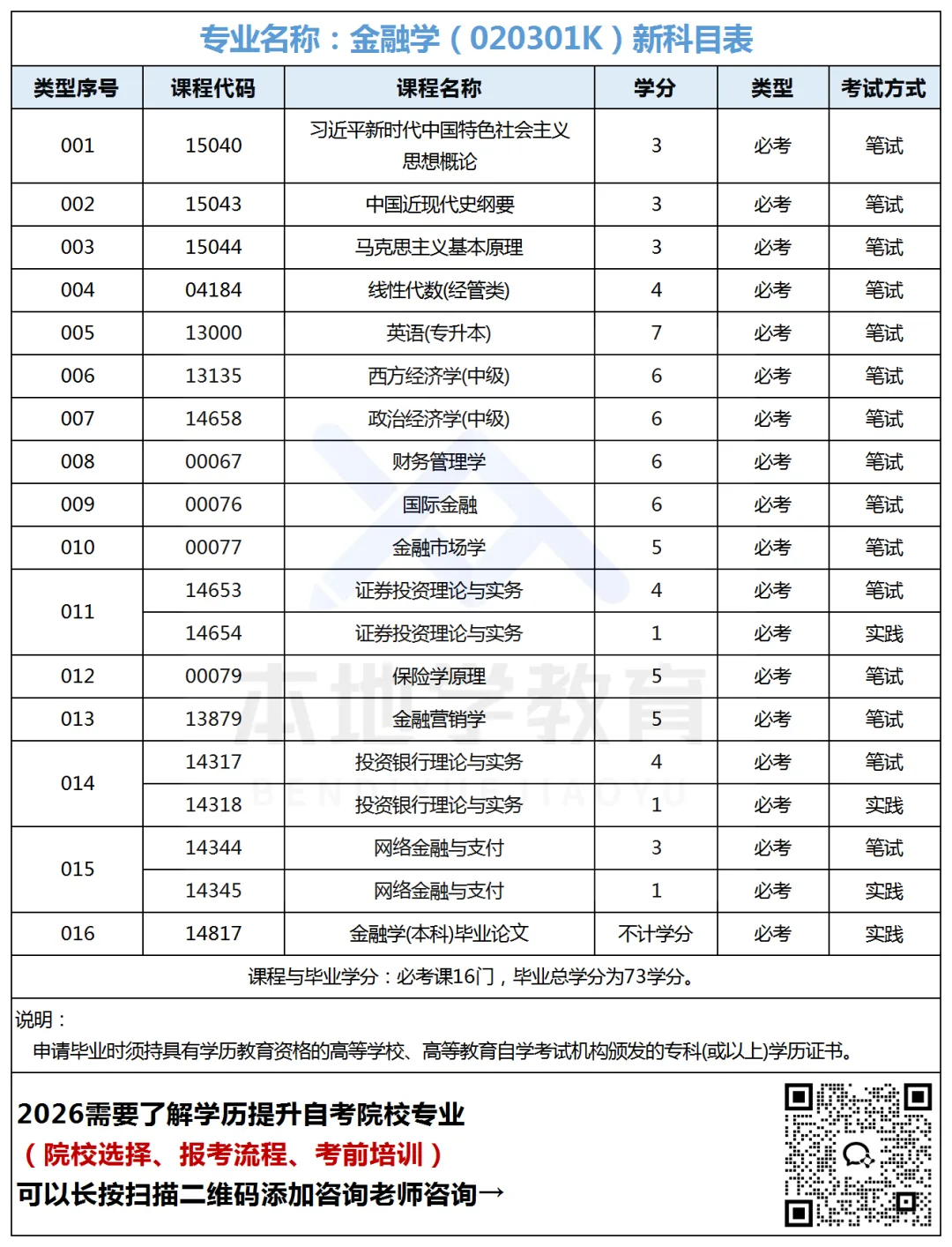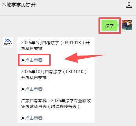 需要专业开考科目的同学,可以扫描下方二维码,关注【本地学学历提升】公众号。回复【开考科目】或对应科目名称即可查看。(如下:法学)
