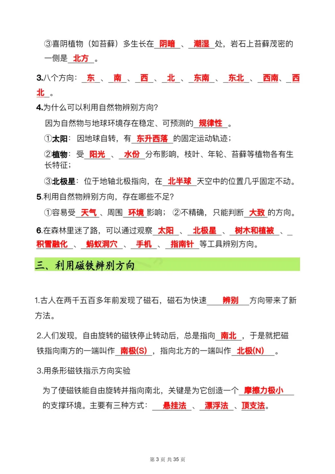 今天为大家分享:三年级下册科学是培养观察与探究能力的关键阶段,知识点汇总紧扣第一单元 “辨别方向”,以 “太阳辨向 + 自然物辨向” 为核心,打造了科学、实用的方向认知体系。