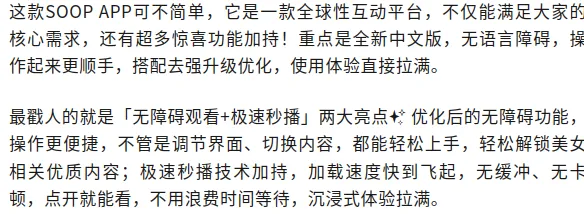 ✅ 应用名称:SOOP ✅ 应用版本:2.11.0 中文版(去强升级,更稳定流畅) ✅ 应用大小:93MB(安装快速,不占过多手机内存) ✅ 应用系统:安卓(全机型适配,安装即能用)