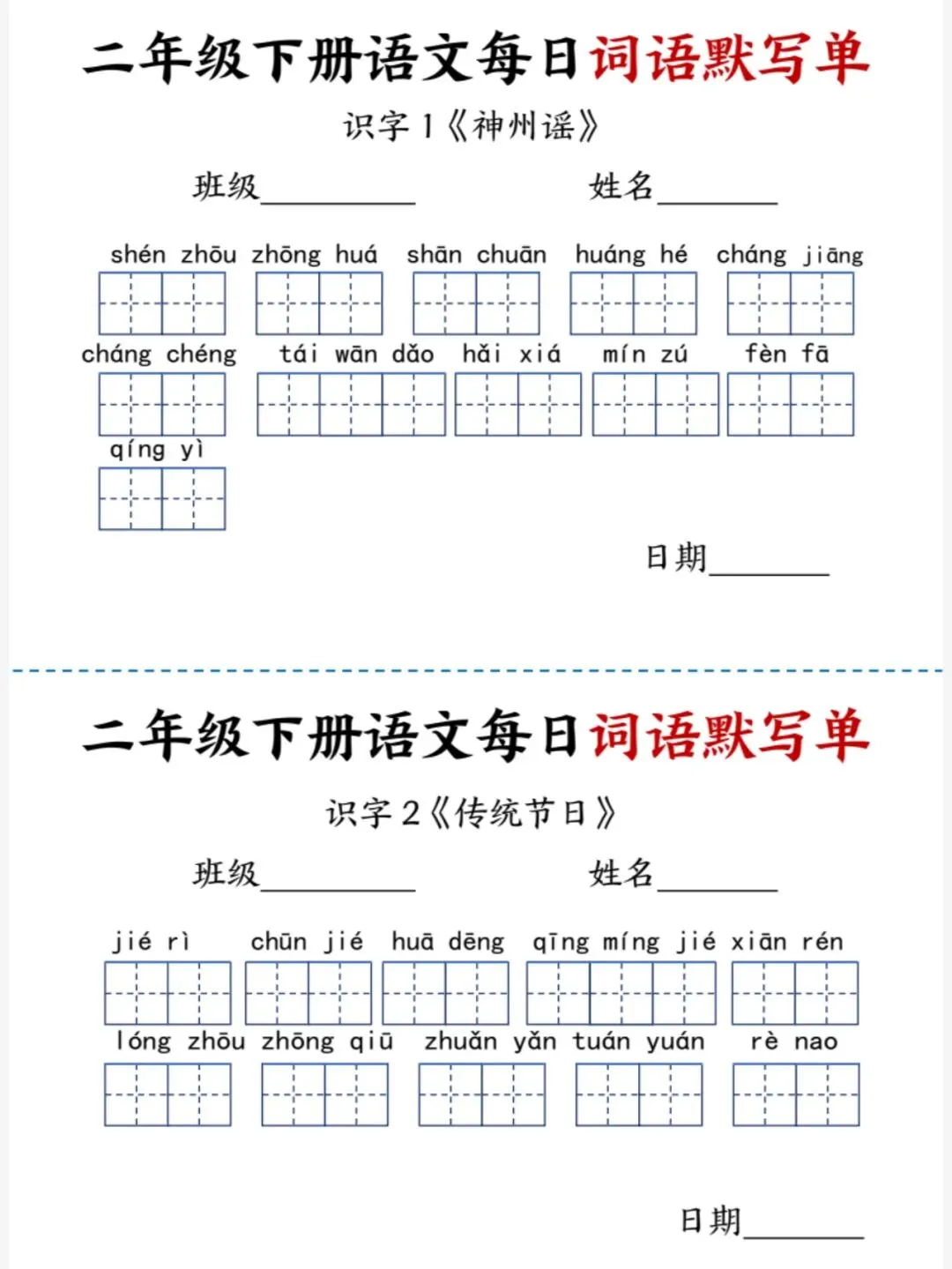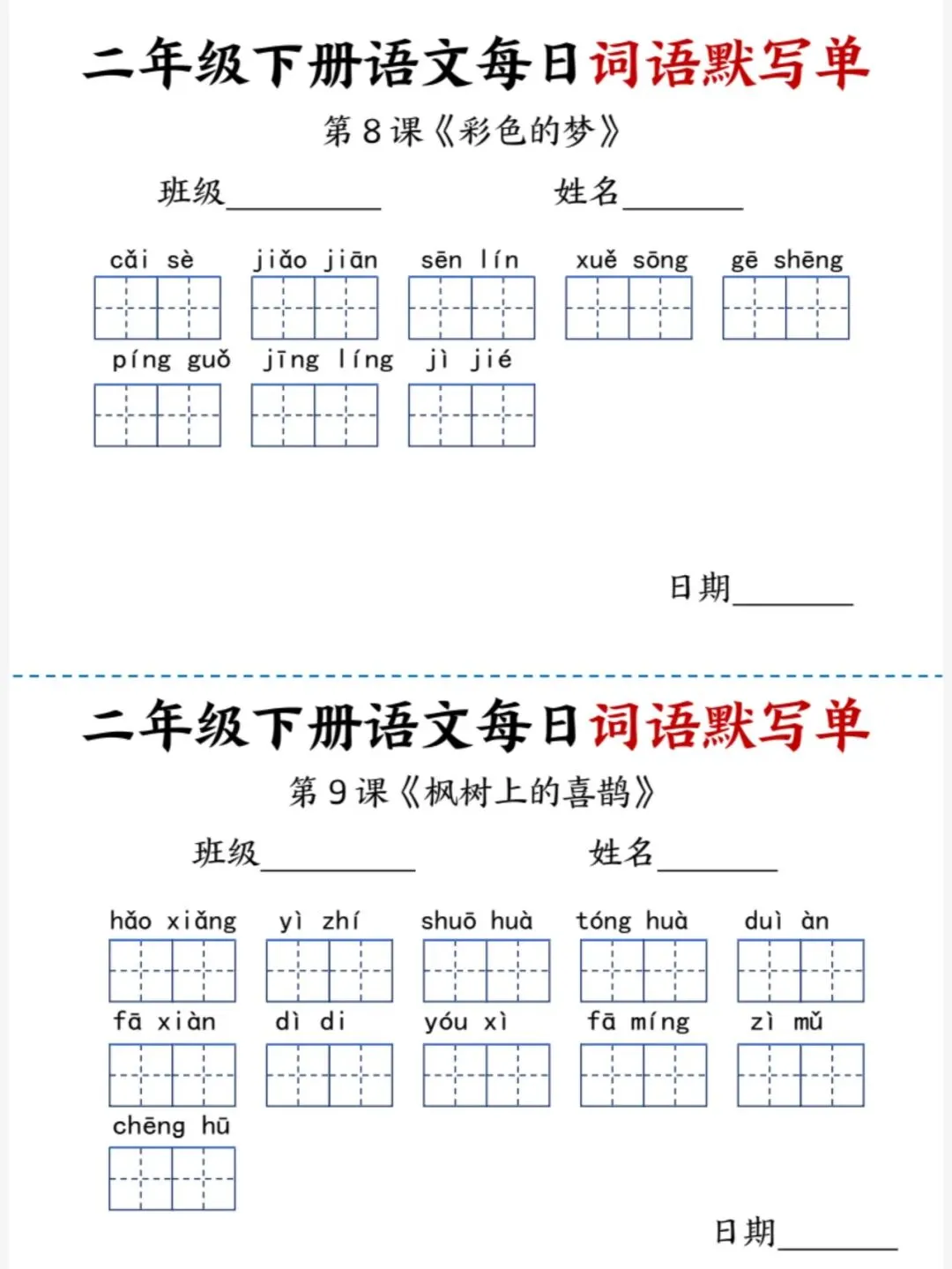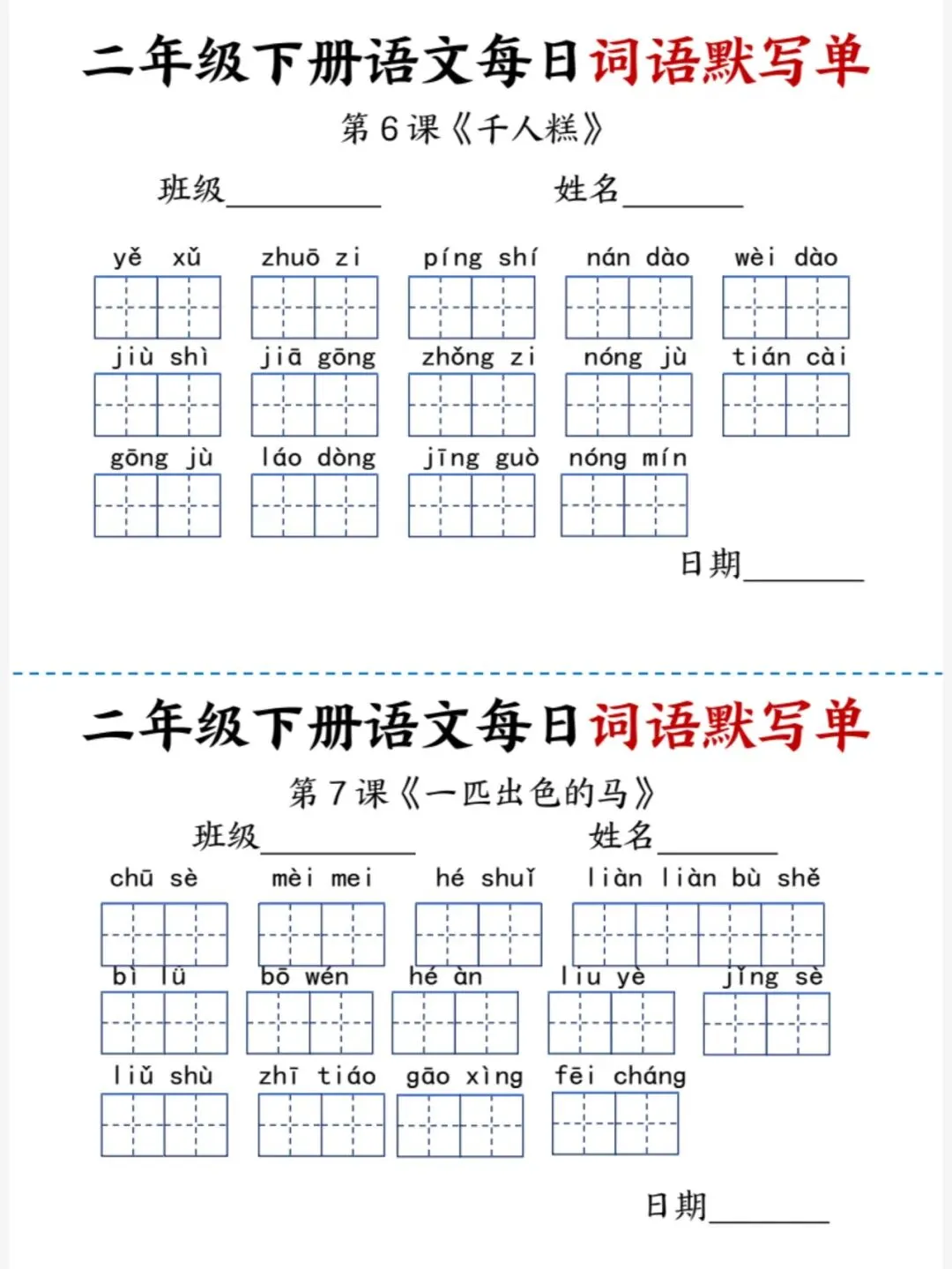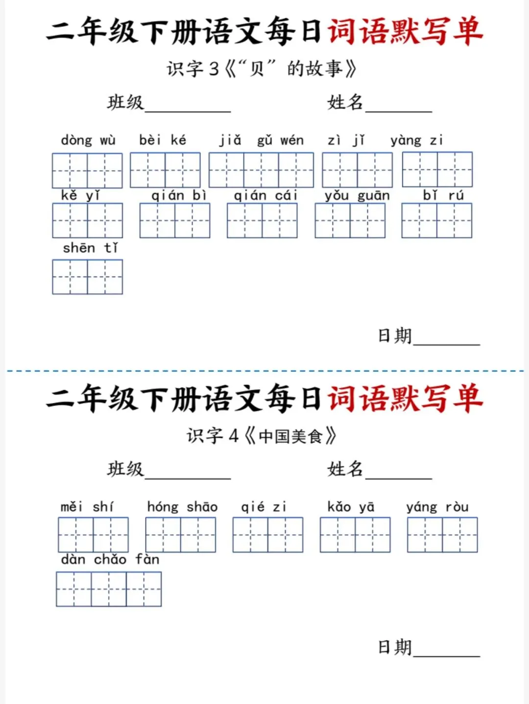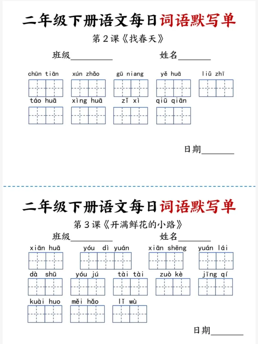 26春二年级下册语文每日词语默写单(电子版可打印)