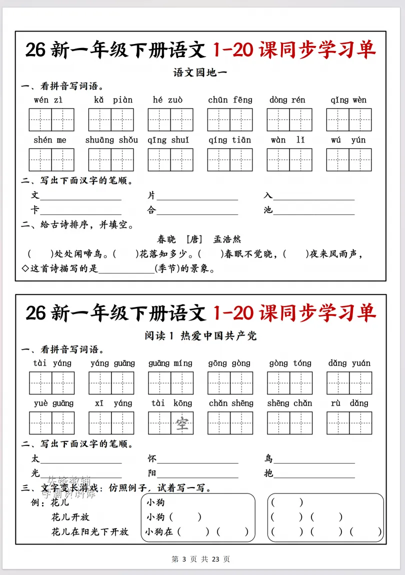 大家好,我是玥琳麻麻,今天分享的是小学《一年级语文下每日词语默写单》。一年级语文下册每日词语默写单,能帮孩子巩固生字词、夯实识字基础,通过反复书写加深记忆,减少错别字。坚持默写可提升书写规范与速度,培养认真细致的学习习惯,同时锻炼专注力和记忆力。它还能让家长及时了解孩子字词掌握情况,针对性查漏补缺,为阅读和写作打下扎实基础。
