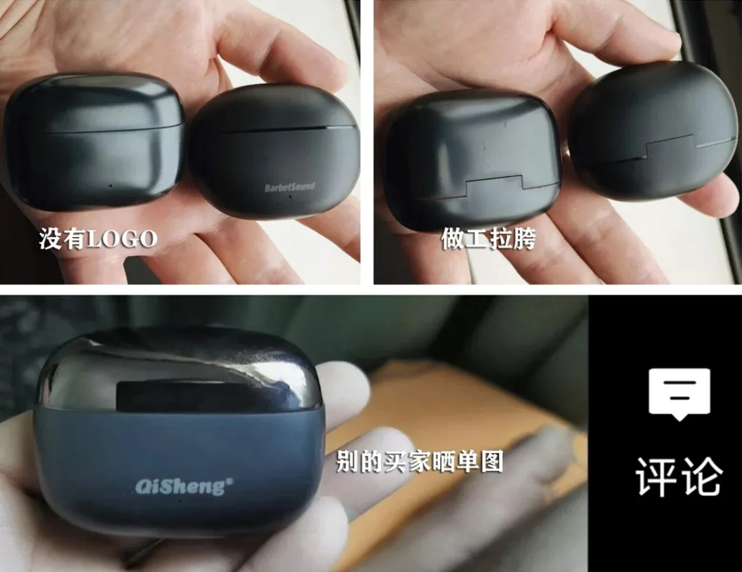 它就是那种典型的“公模贴牌”产物:惠州鑫力鑫代工,东莞奇声监制,名字听着像山寨,但玩法却超前得离谱。外观上,我拿到的是低配版,充电仓连LOGO都没印,塑料感扑面而来,活脱脱一个半成品;但同款高配版(15元档)立马镀铬亮面+品牌标,视觉溢价直接拉满。