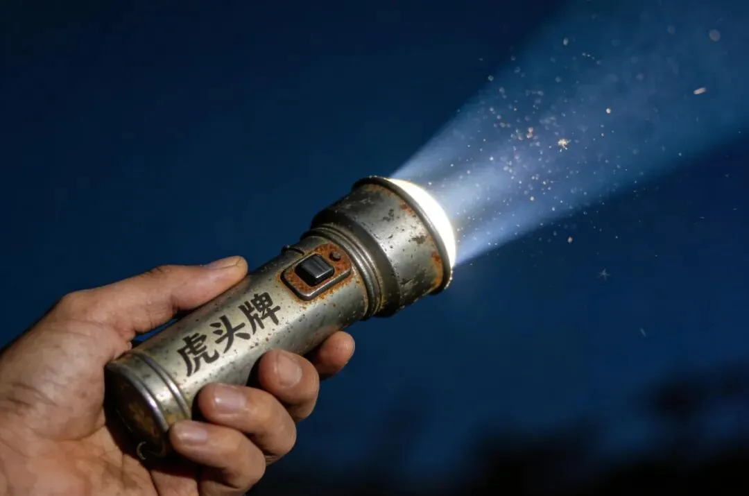 虎头牌手电筒,装三节大号电池,沉甸甸的。夜里上厕所、走夜路、抓知了猴,全靠它。
