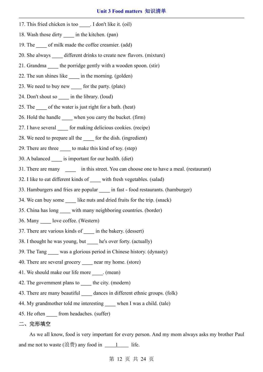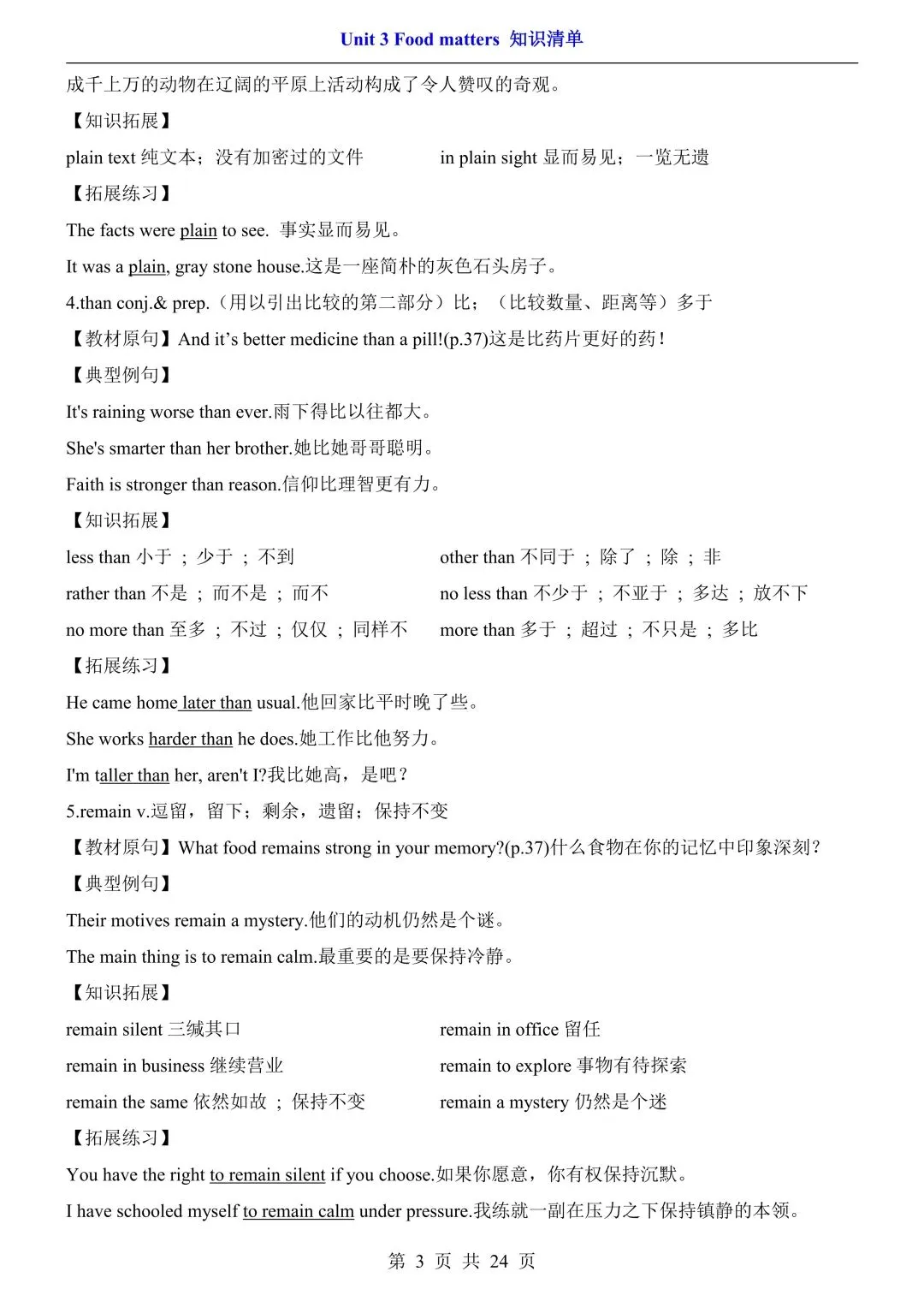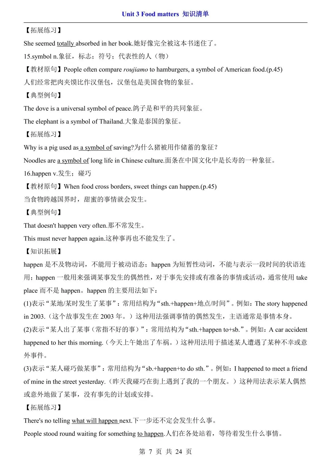 七年级初一下册外研版英语第三单元知识点清单汇总+巩固练习附答案丨高清可打印(305)