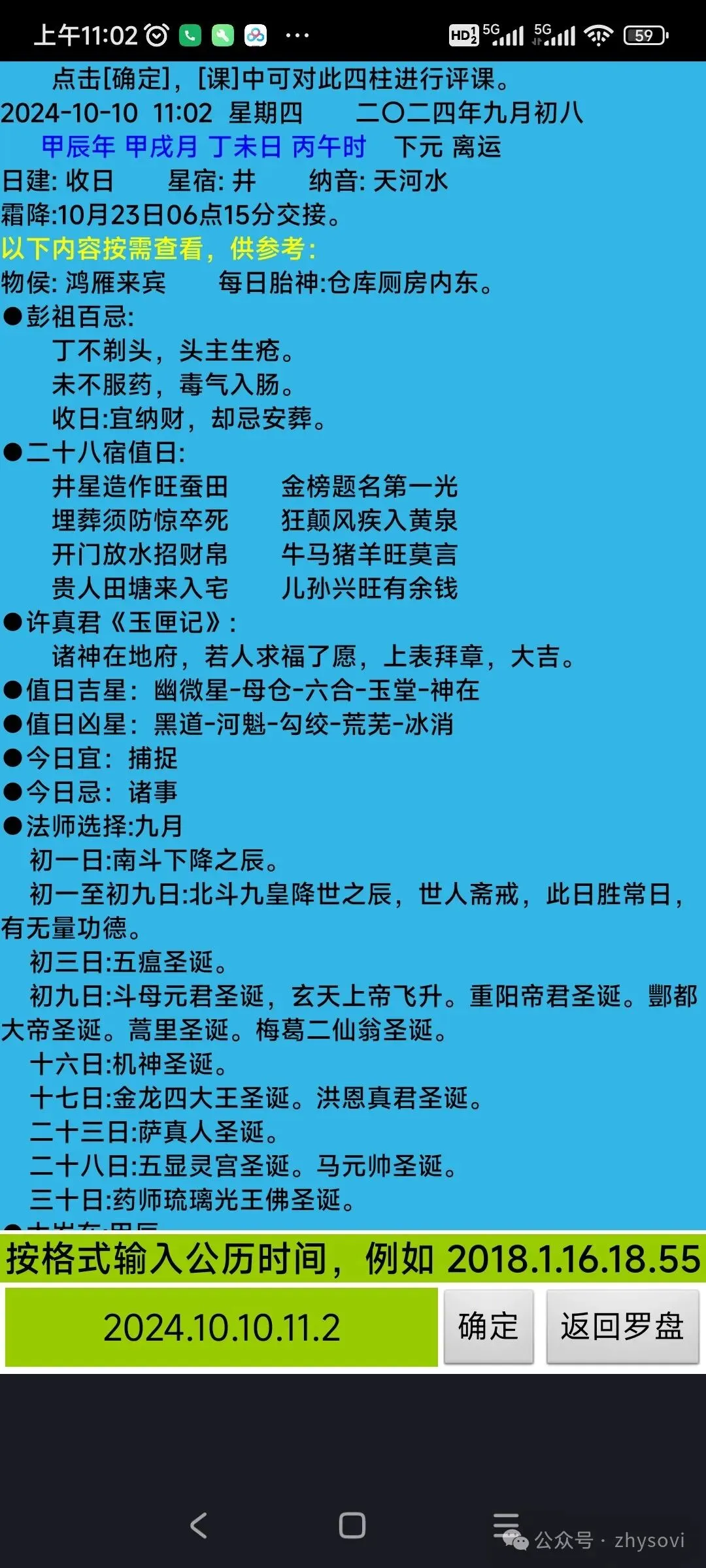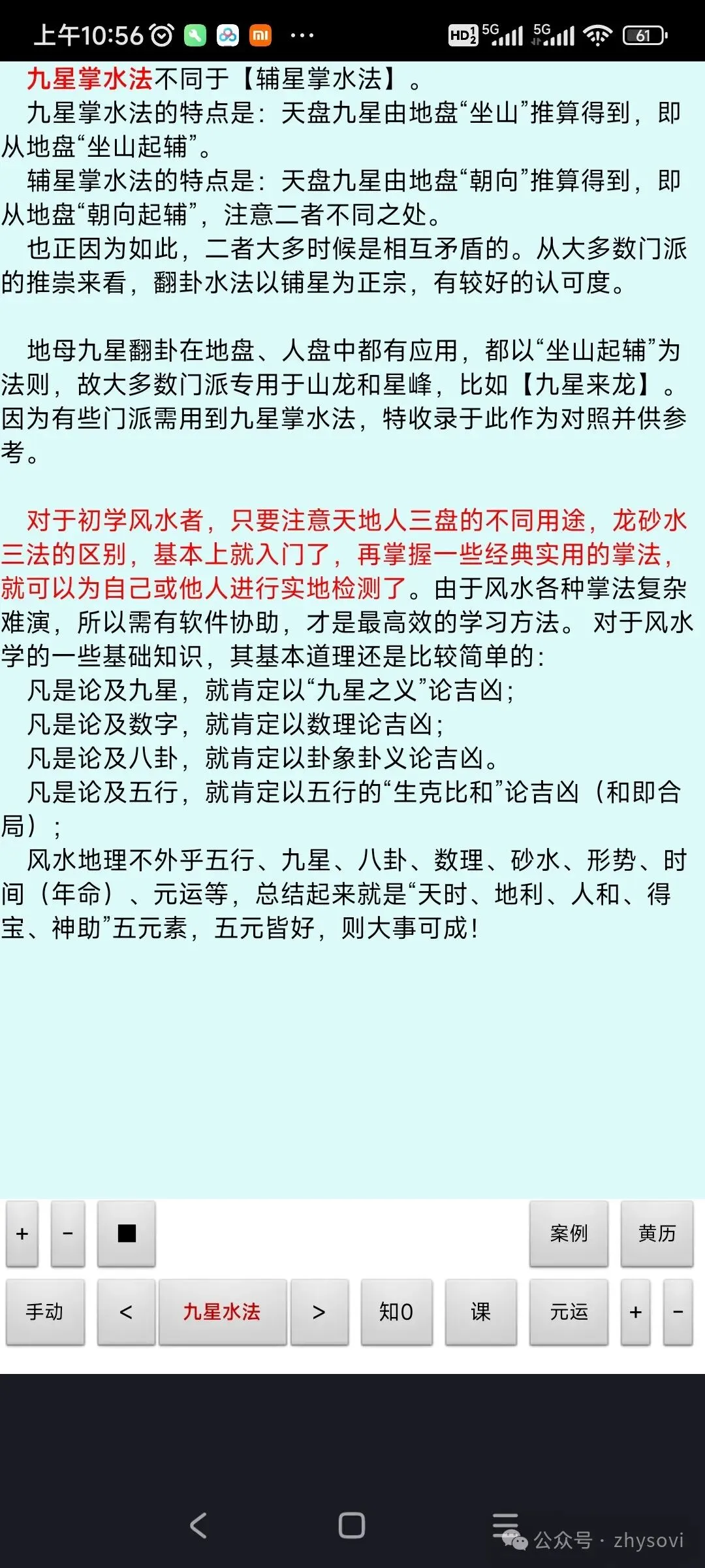 软件,带日课,这个软件的内容均为业内人士认可的精华方法,主要功能有:排山掌(地盘正针,格龙立向)、辅星水法掌和地母九星翻卦掌水法(三元三合两用,用于纳水)、九星来龙(正针,整合了排龙诀和九星掌),九星掌点星峰(人盘中针,用于消砂。整合了赖公阳宅断)、三元风水(专用地盘)、分金线(正针)、洪范五行断阴阳二宅(正针)、玄空飞星(三元罗盘专用地盘)、玄空择日、纳甲择日、抽爻换象、各类神煞、三合风水的四大水口和三合水法、天星风水(三盘共列),绝密龙虎水法等,同时整合一百二十龙、七十二龙、寻龙释疑、应用例子等等内容。