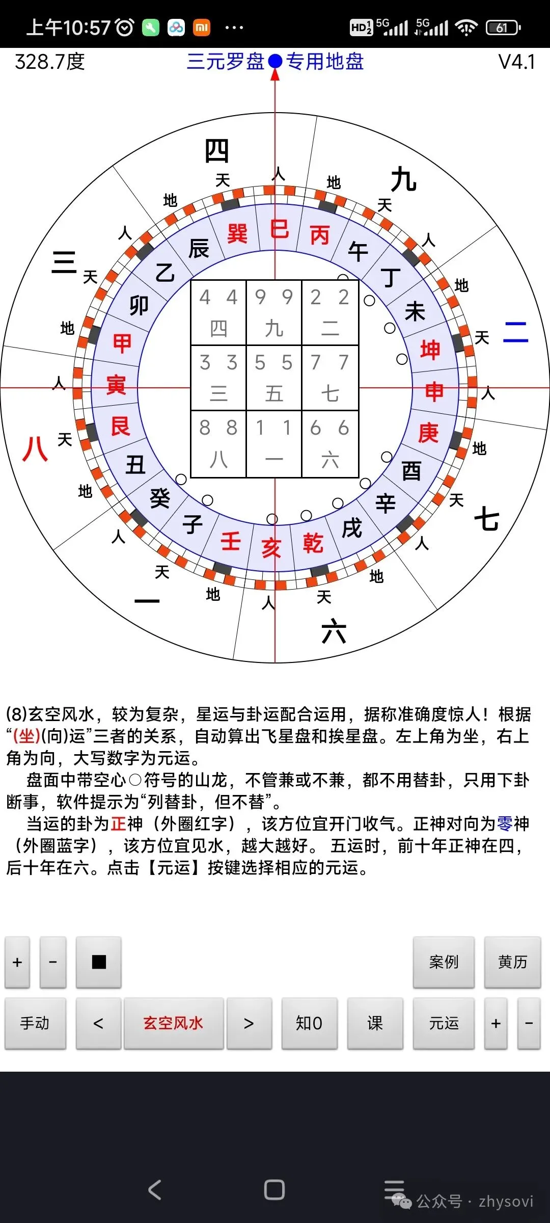 本手机版综合罗盘软件app严格按照风水口诀推演,全自动地推演结果,既适应 [地盘]推算,也适应[人盘]或[天盘]推算。天地人三盘可以同时使 用同一种掌法!因此能兼容各家各派的用法,堪称万能罗盘!
