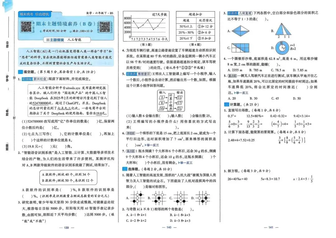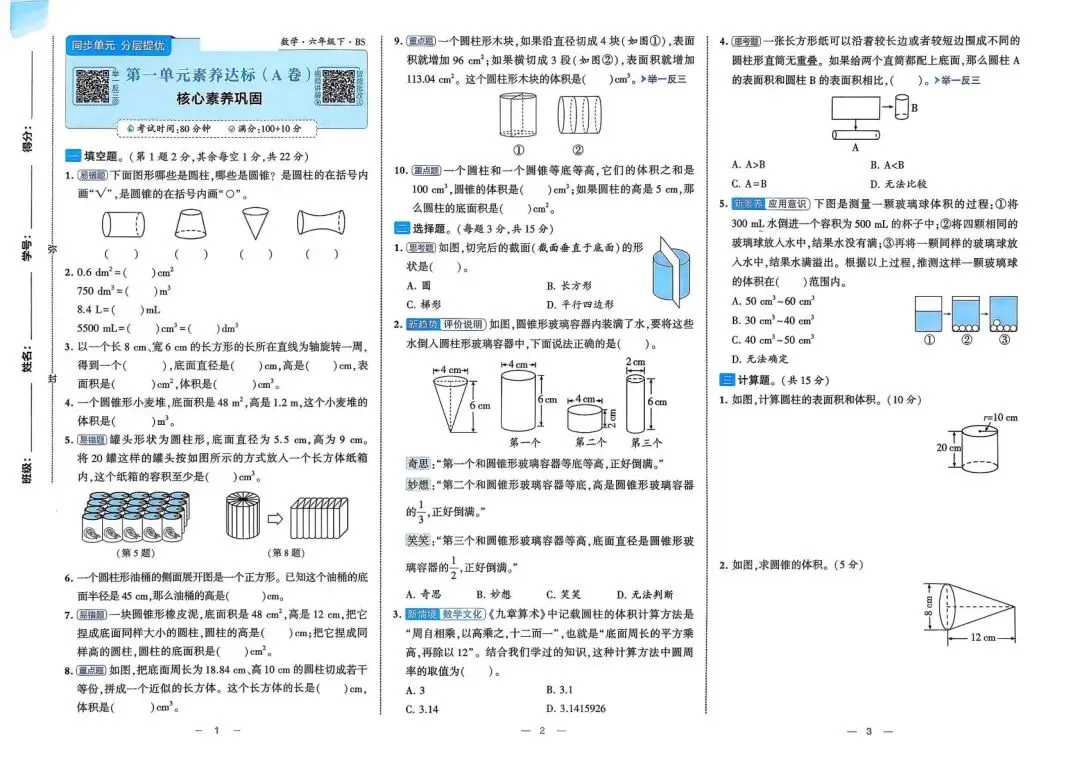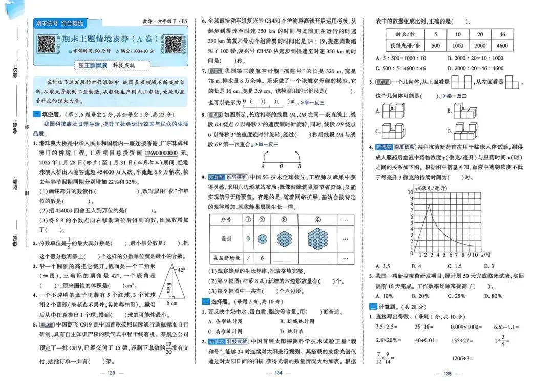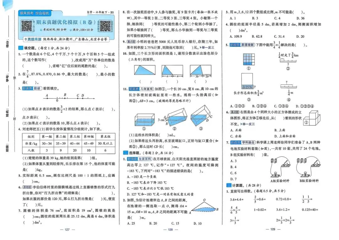 2026春(北师大版)六年级下册数学(共26套,含答案)| 完整电子版可打印《1~4单元新情境测试卷+月考期中期末真题卷+专项突破卷测试卷》