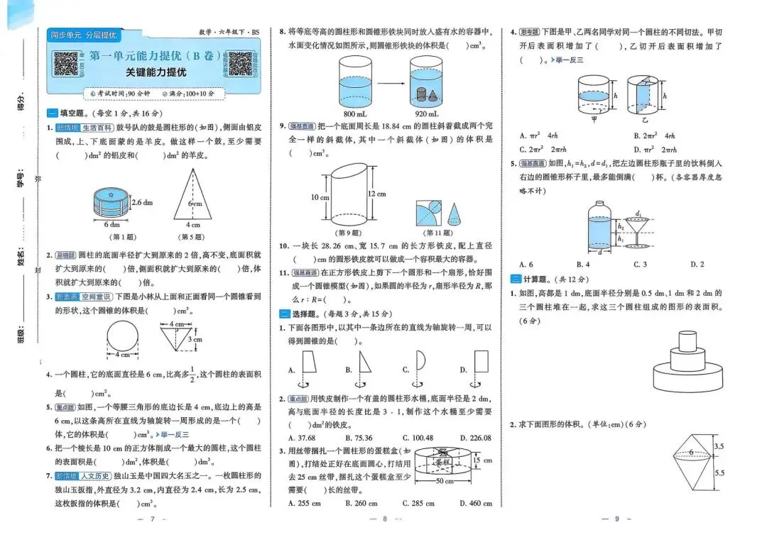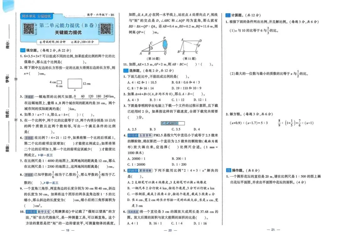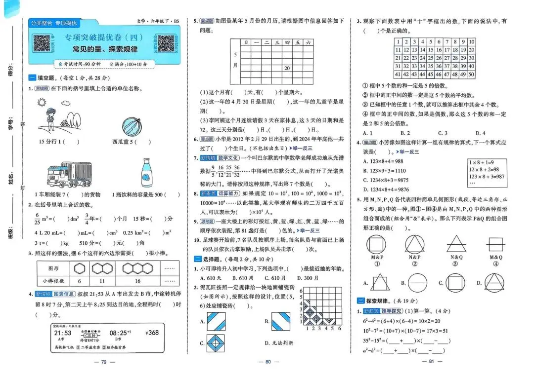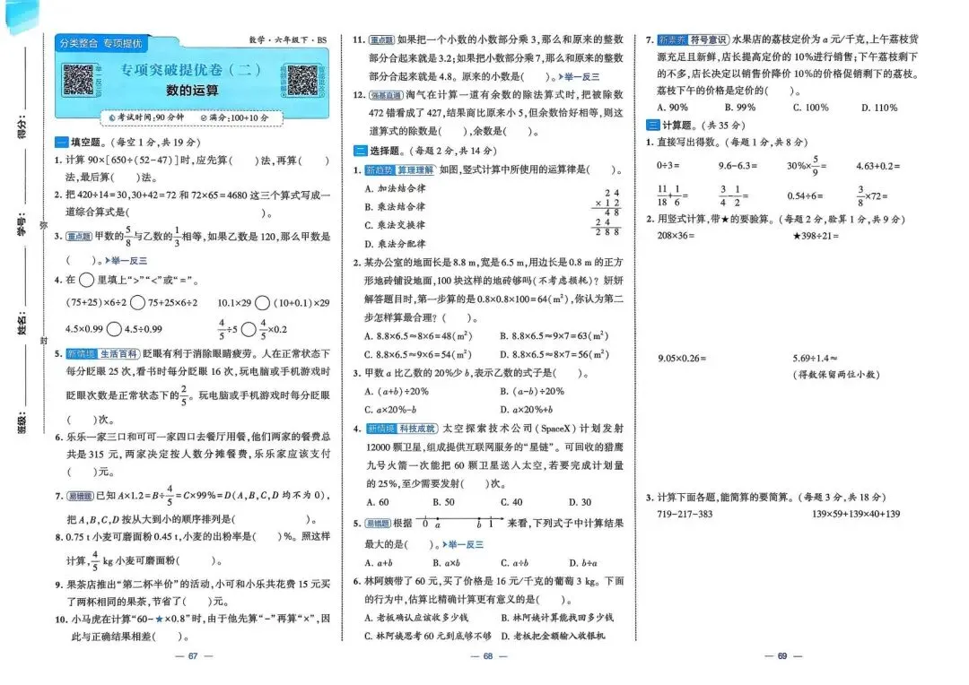 2026春(北师大版)六年级下册数学(共26套,含答案)| 完整电子版可打印《1~4单元新情境测试卷+月考期中期末真题卷+专项突破卷测试卷》