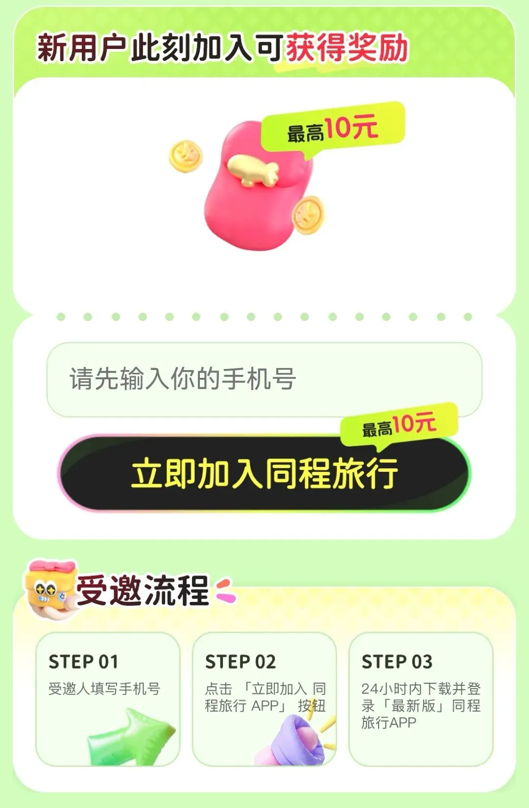 2.在打开页面中输入你的手机号并且点击“立即加入同程旅行”按钮进入下一步