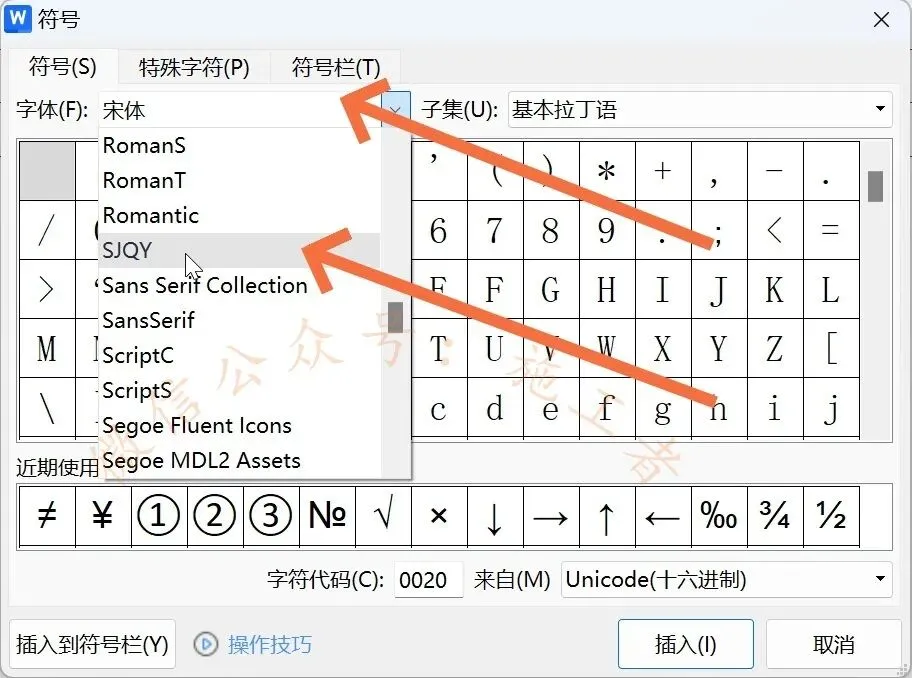 第5步、找到SJQY字体(也就是将字母的字体改为SJQY)