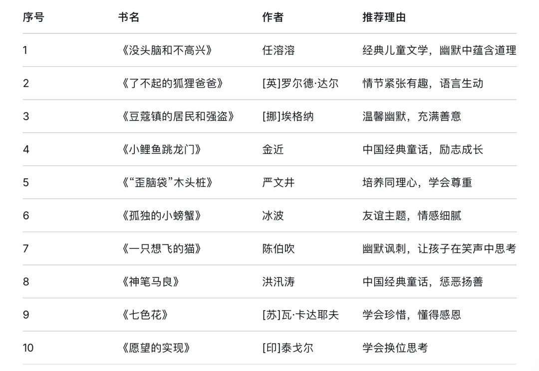 三年级是“分水岭”,阅读从绘本向纯文字书过渡。书单侧重勇气、坚韧与品格培养 。