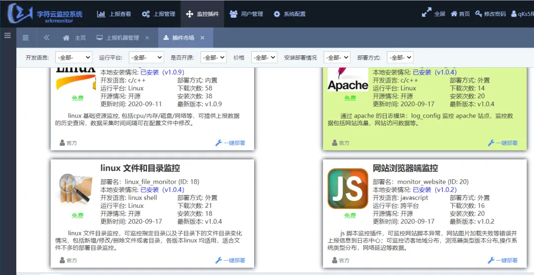 采用 插件化架构,常用监控需求通过插件实现,无需开发