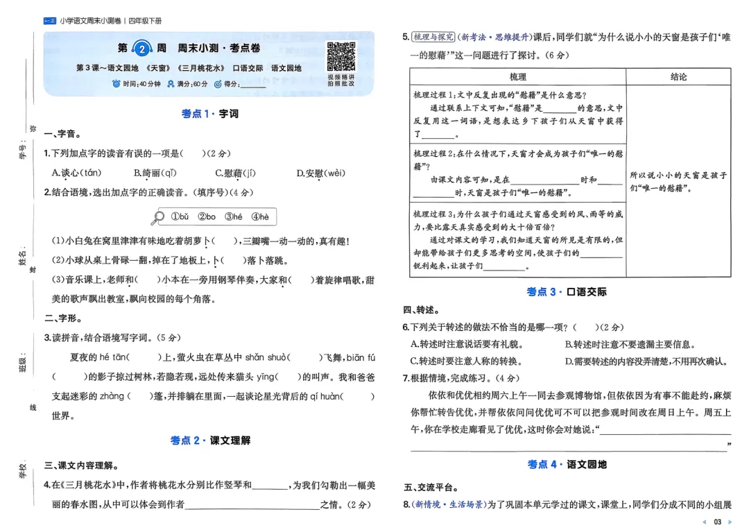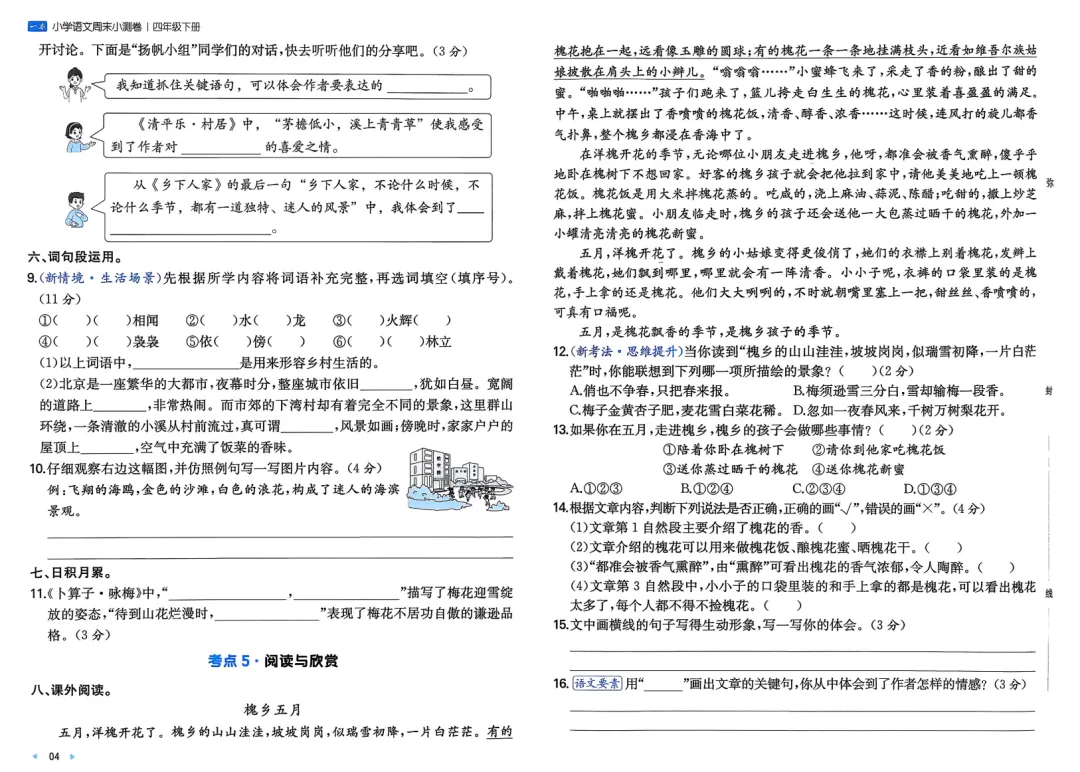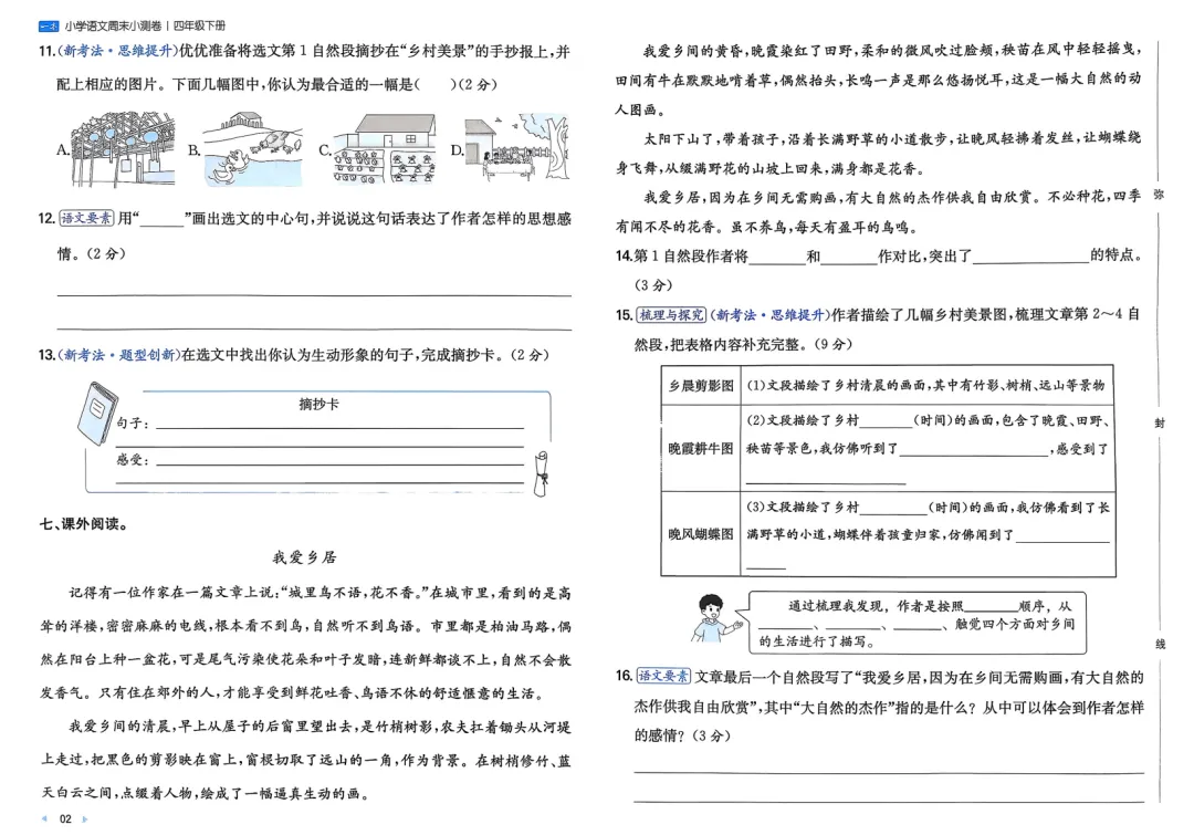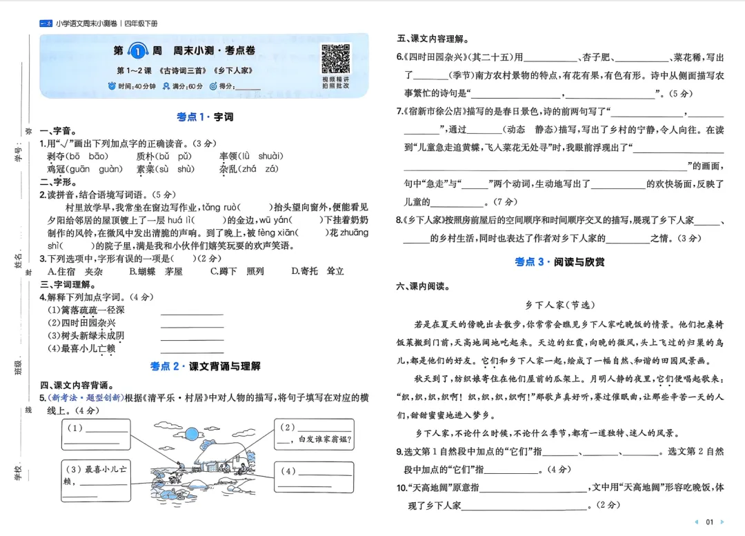 四年级下册语文一本周末小测卷(家长可打印每周给娃做下)