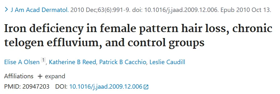 【2】RUSHTON D H. Nutritional factors and hair loss[J]. Clinical and Experimental Dermatology, 2002, 27(5): 396-404.