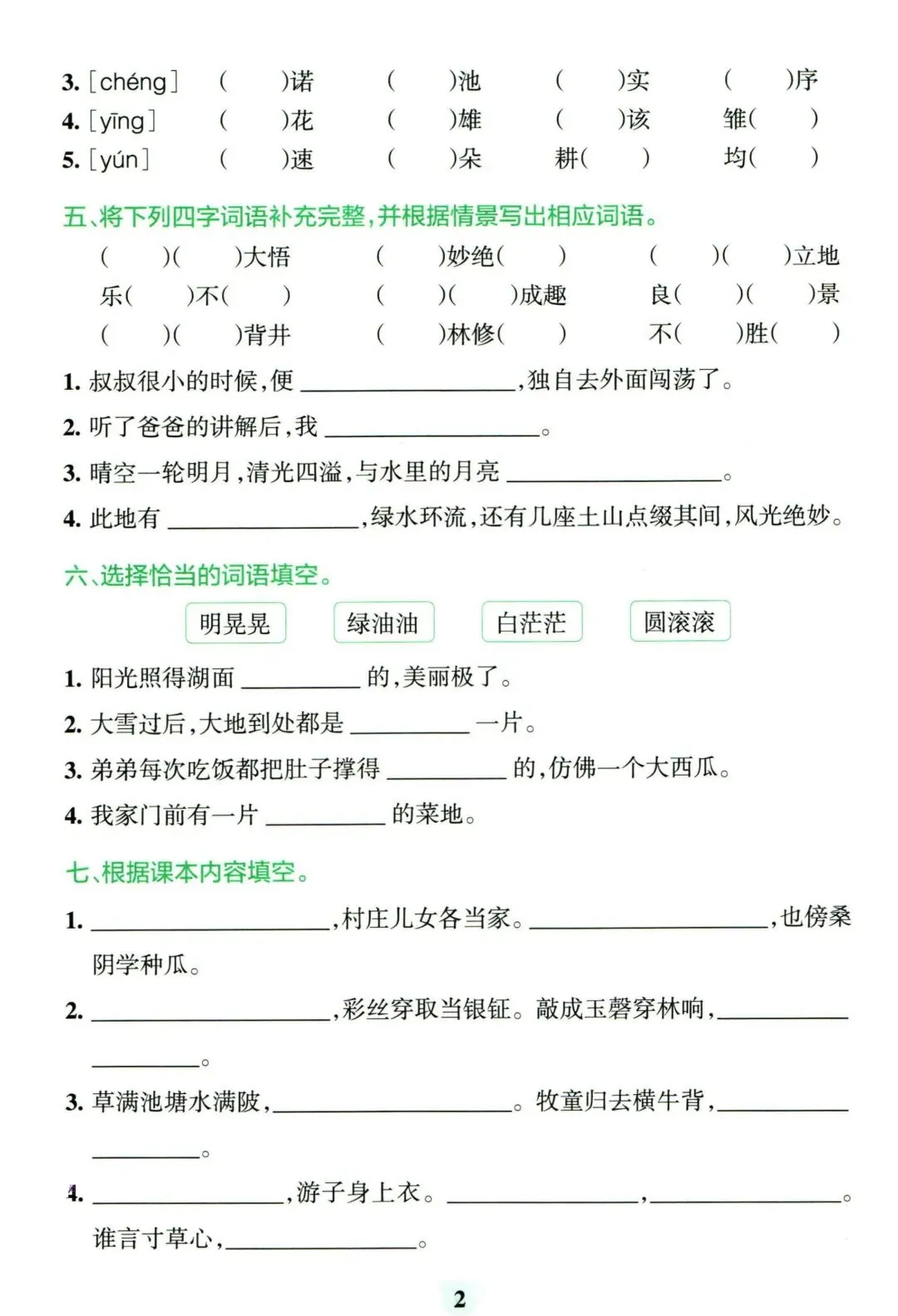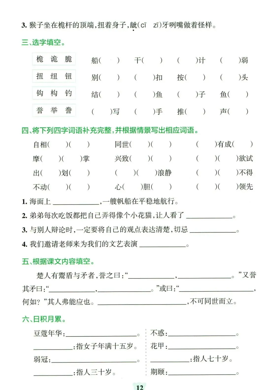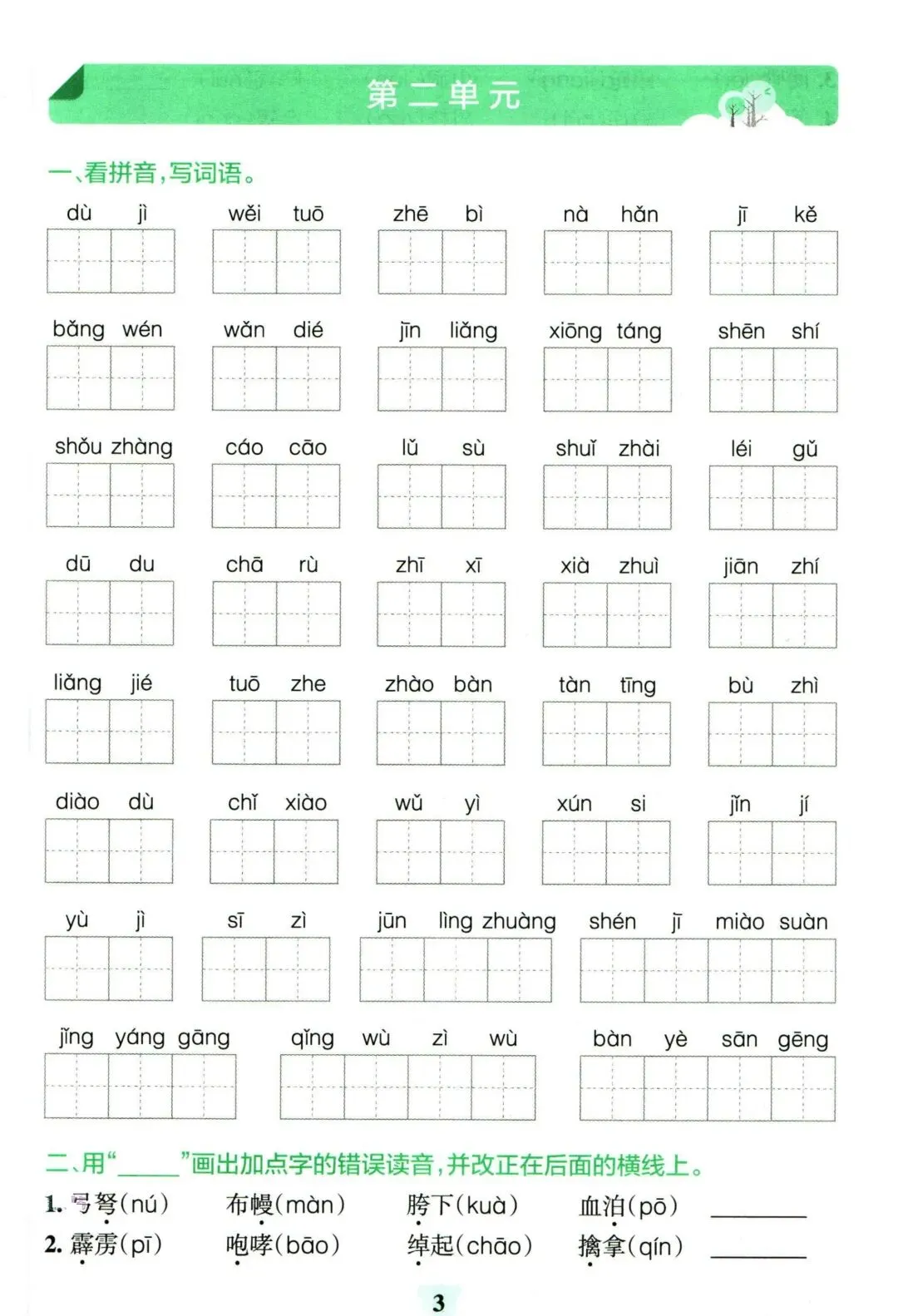 26年春人教(部编版)五年级下学期语文1-8单元练习《看拼音写词语+按课文内容填空》【附答案】丨高清电子版可打印(301)