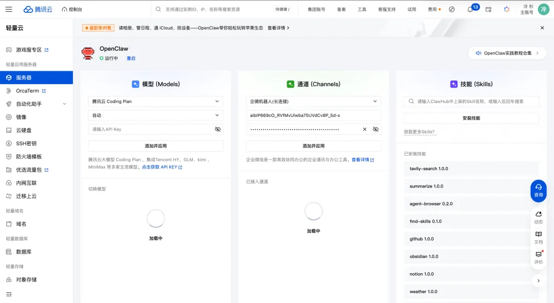1.使用腾讯云轻量应用服务器Lighthouse2.进入轻量云,选中已部署OpenClaw的轻量应用服务器,点击服务器实例卡片即可进入“管理实例”页面,进入“应用管理”页