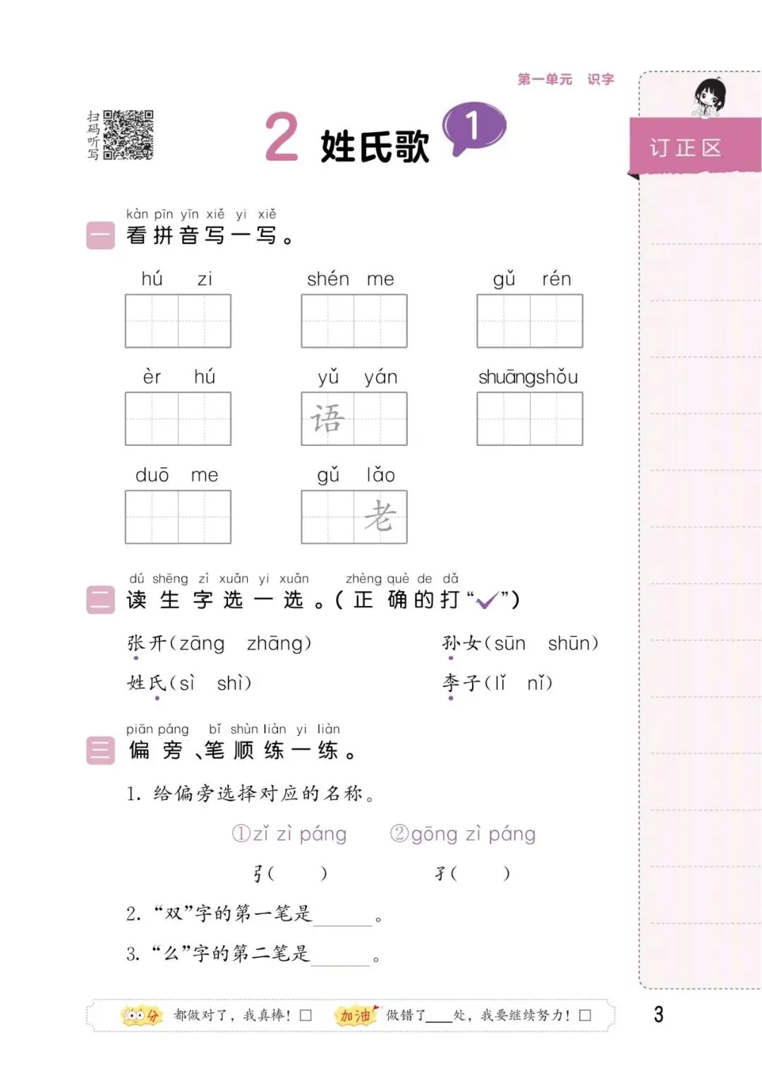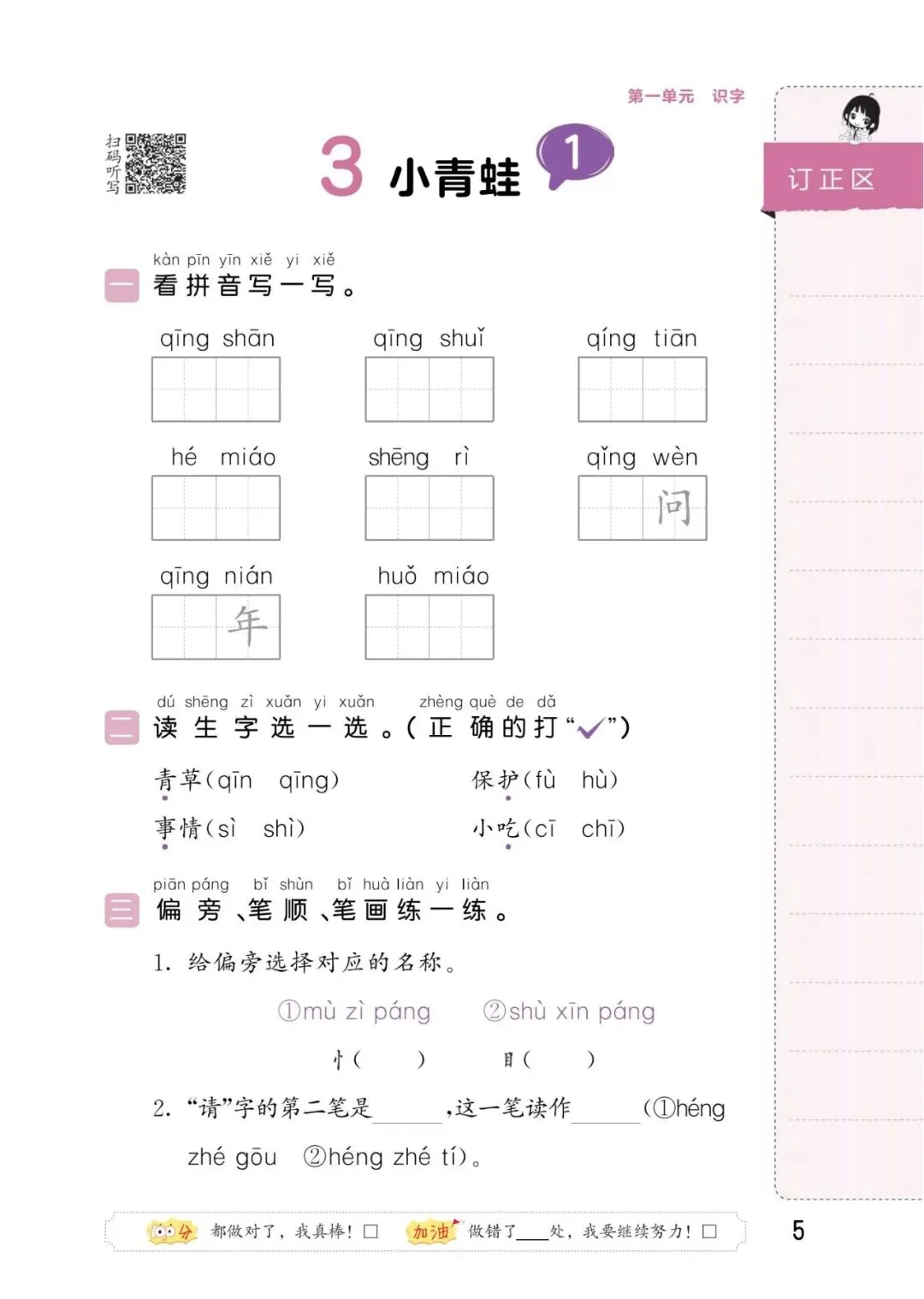 接下来以《姓氏歌》、《小青蛙》、《热爱中国共产党》三篇课文为例,展示两套资料。大家按需选择,全册资料获取方式见文末,请及时保存。
