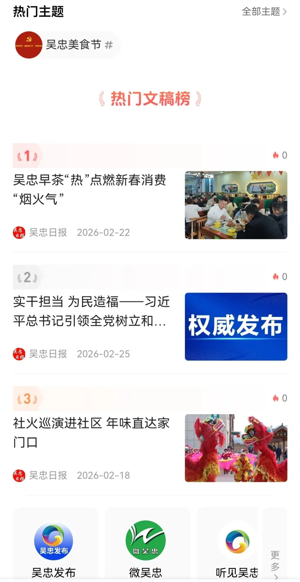 本次升级的核心亮点——吴忠日报、吴忠发布、微吴忠、听见吴忠四大核心发布渠道融为一体。一键订阅,打通信息壁垒,权威、及时、全面的动态信息流,一个平台,尽览吴忠。