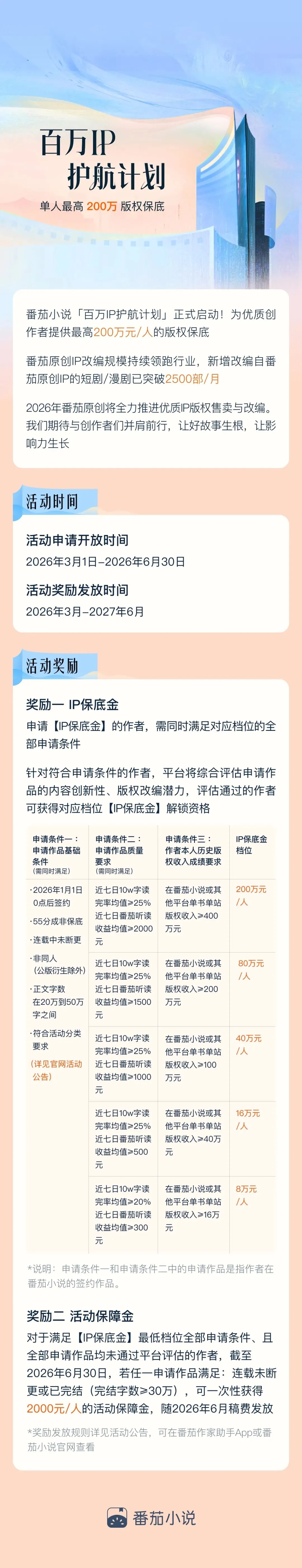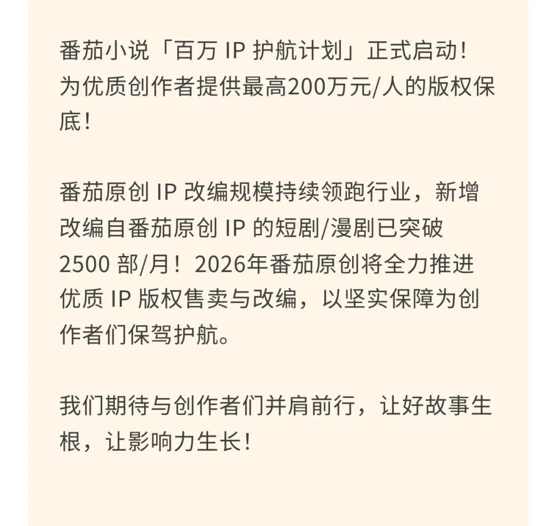 最高200万元 | 「番茄小说」app百万IP护航计划