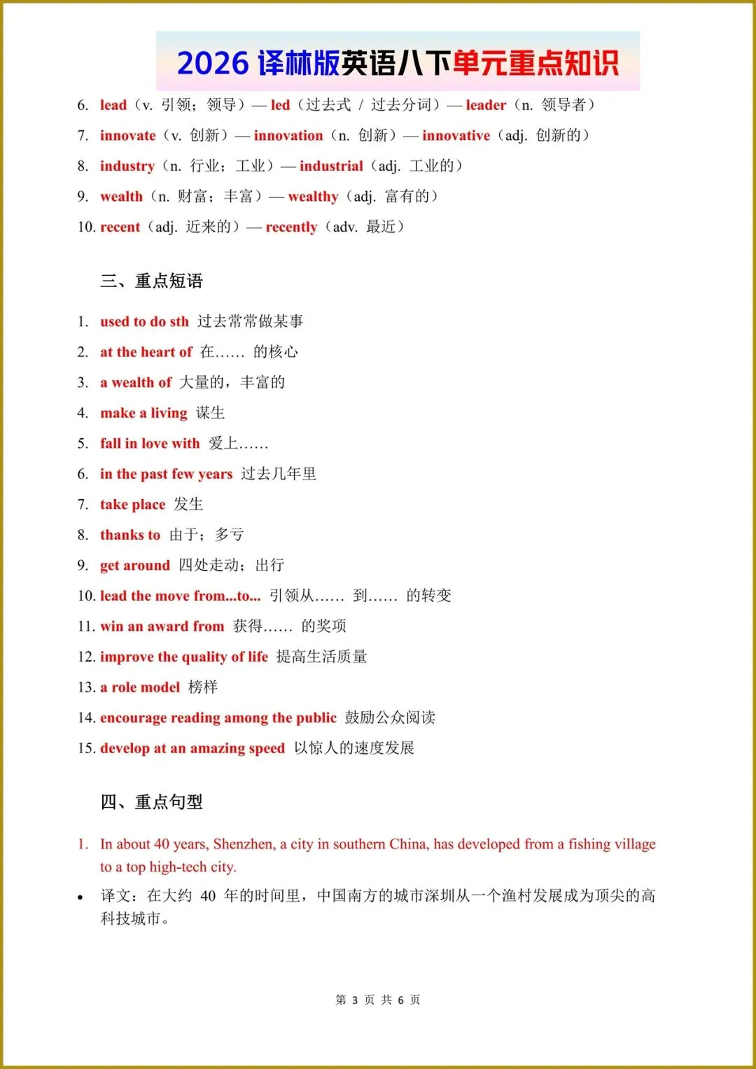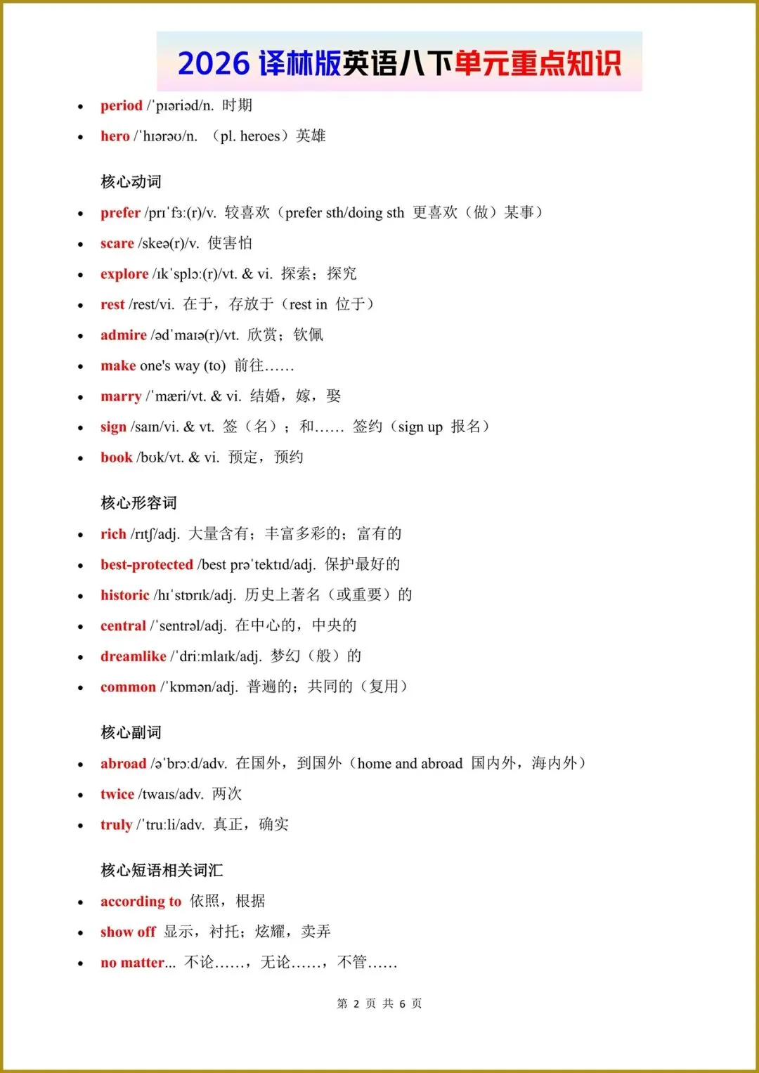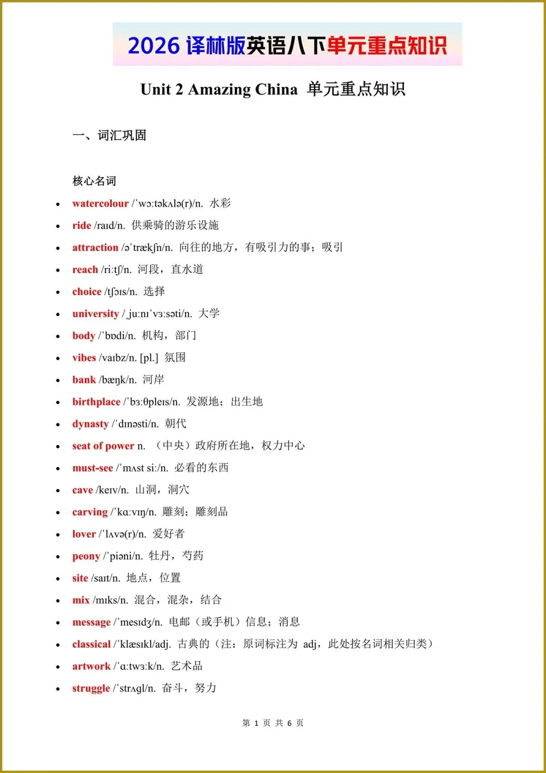 2026春(译林版)八年级下册英语单元重点知识梳理,电子版可打印!