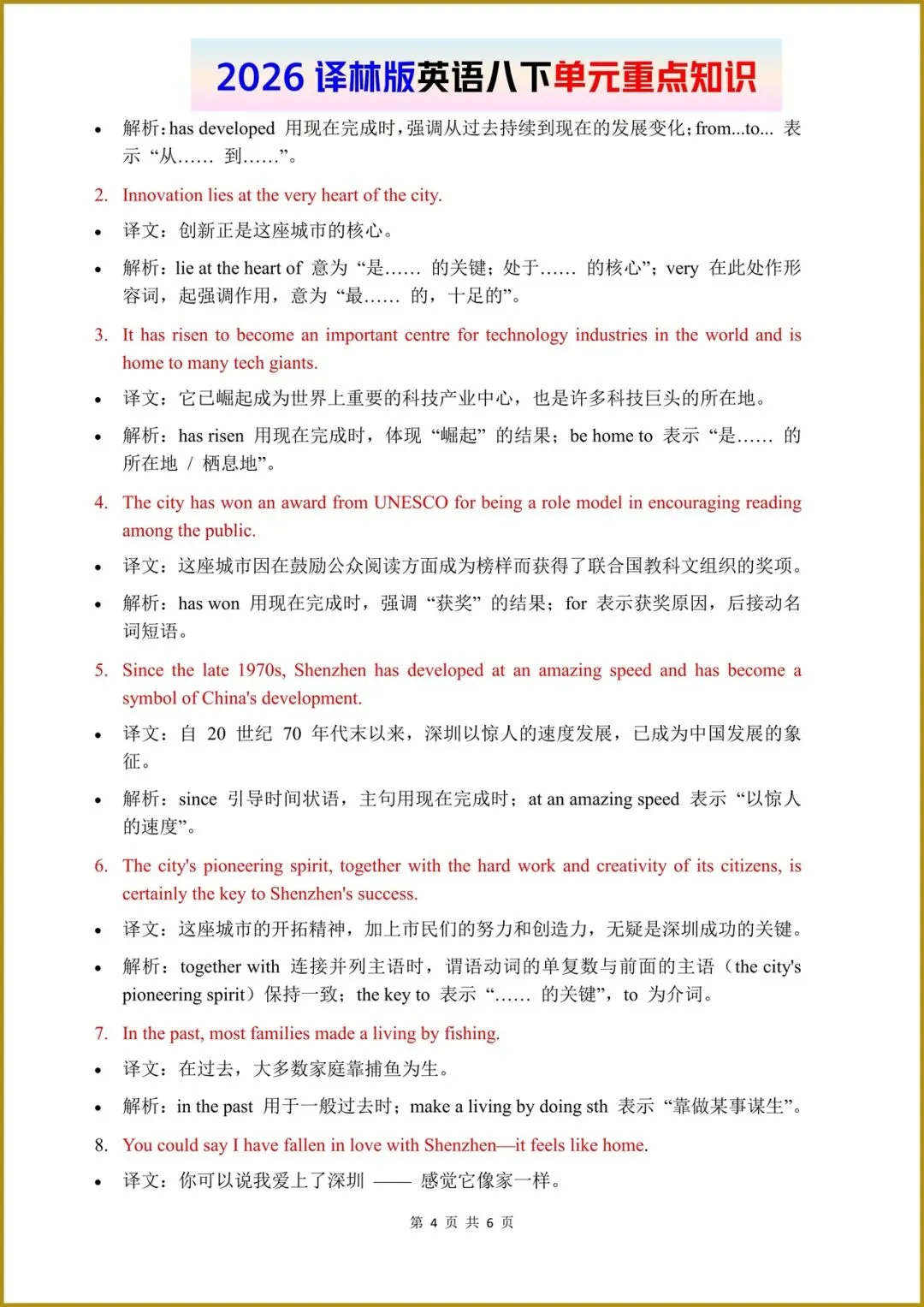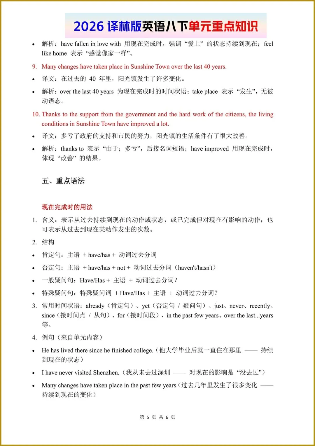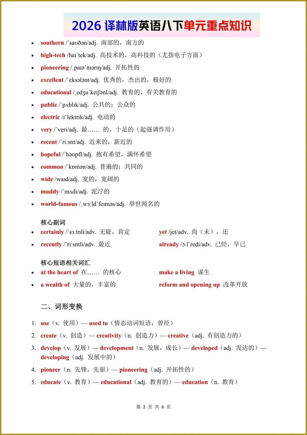 2026春(译林版)八年级下册英语单元重点知识梳理,电子版可打印!