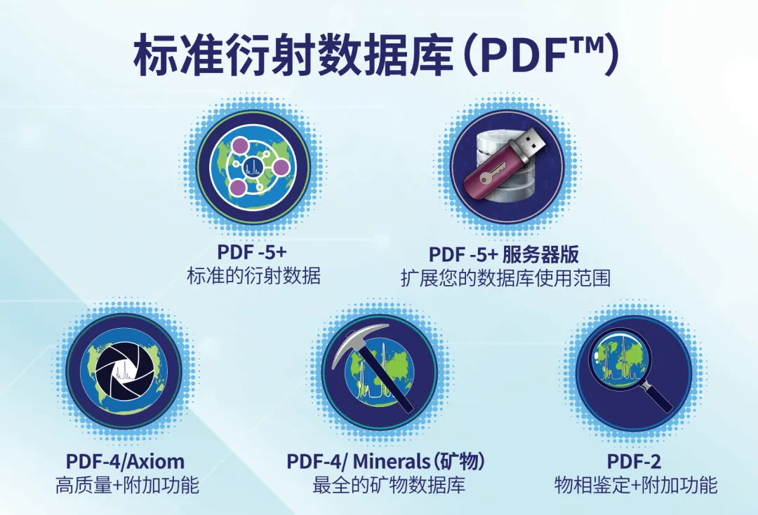 国际衍射数据中心(ICDD)出版发行的标准衍射卡片(PDF卡片),主要用于粉末XRD数据的物相鉴定和定量分析,结合第三方软件如JADE软件,可实现XRD数据的全功能分析,如物相鉴定、定量分析、全图拟合(WPF)、Rietveld精修、结晶尺寸、应力应变等功能。单张PDF卡片可保存的格式有PDF、ICDD XML File、图片、csv、*xy、cif、Bruker TOPAS File(*.str)等。