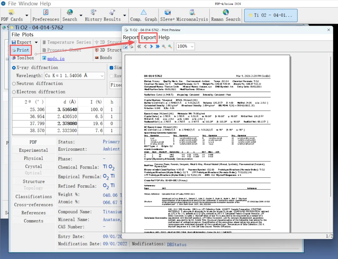 1. 保存PDF卡片中所有内容:PDF和ICDD XML File格式
