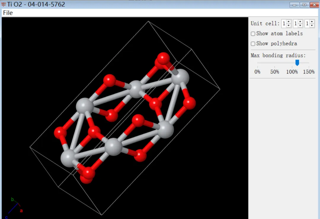注意:如所保存的PDF卡片中含有晶体结构文件,则在JADE软件中打开此*.xml格式的PDF卡片时,同时JADE也会自动启动晶体结构视图对话框,并显示该PDF卡片的晶体结构。