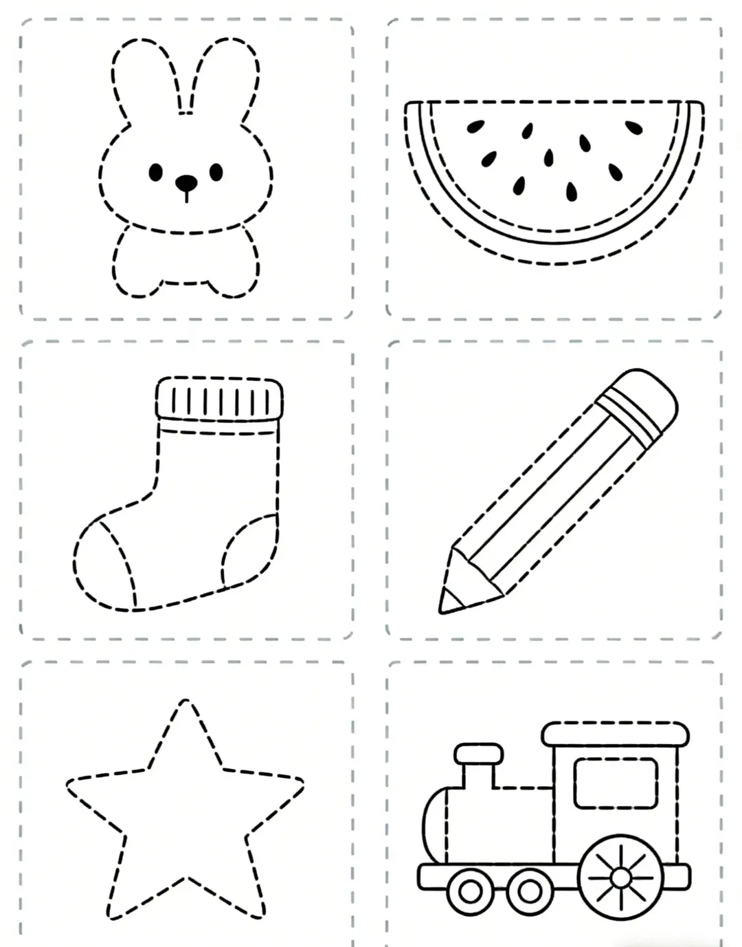 幼儿园小班控笔绘画素材合集之线迹描摹(可打印)